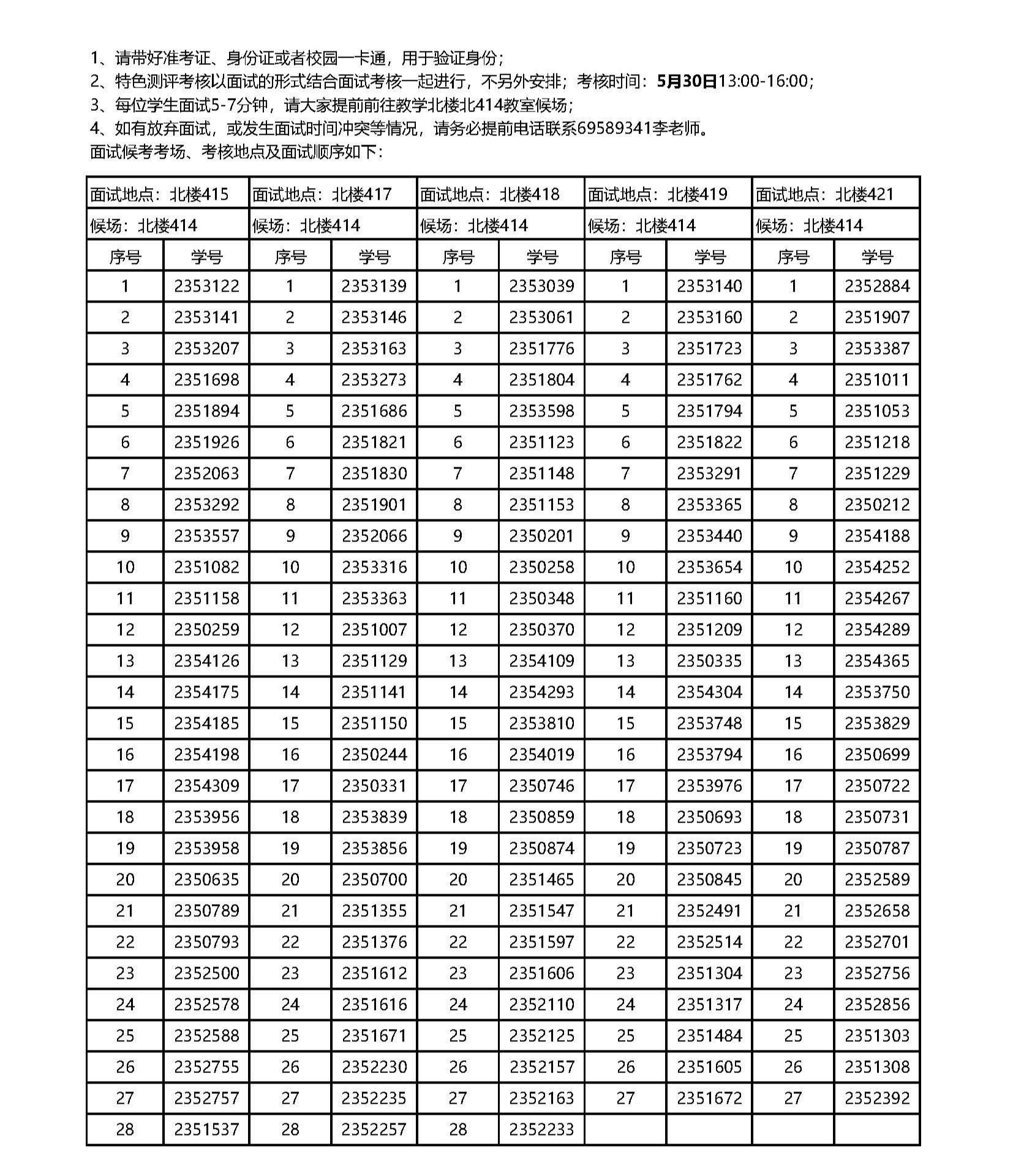 疯情书库 2023级主修专业确认跨类面试学生分组安排表