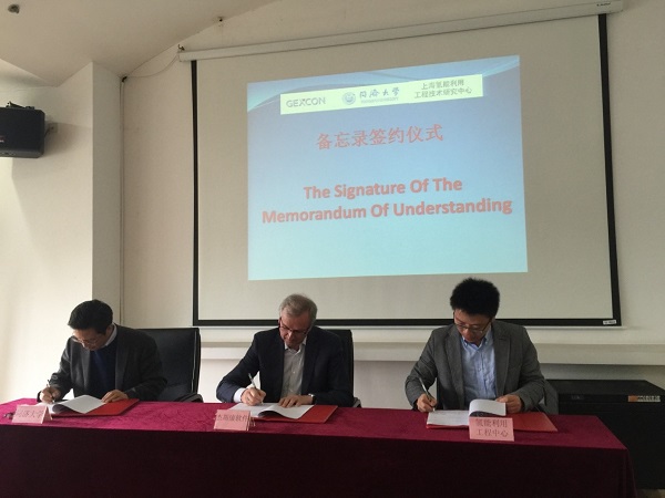 副院长魏学哲教授、上海氢能利用工程技术研究中心刘绍军副主任、Gexcon公司CEO Sturle H Pedersen先生分别代表三方签字。