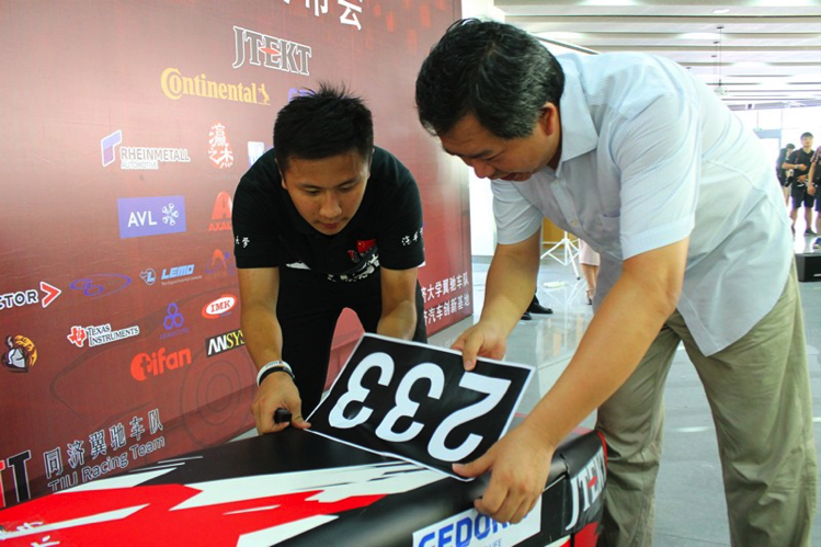 作为一辆完整的赛车,车号必不可少,FSC大赛组委会副秘书长高华老师为新车贴上德国赛车号 233 .