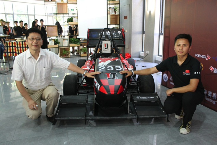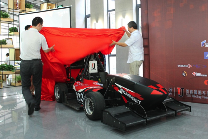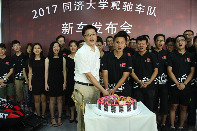 副院长钟再敏老师以及车队总指导老师李理光教授为新车TR17揭幕。
