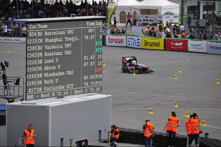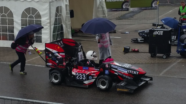 从中国上海经转莫斯科再到德国法兰克福,我们步履匆匆,不远万里来到梦想的赛场。舟车劳顿消磨不了队员们的斗志,我们早早地通过了车检并赶在八字绕环开始之前进行了三轮动态练习。完全湿地的八字赛上,233号战车似乎没能占到任何优势,只得到了一个中规中矩的成绩。