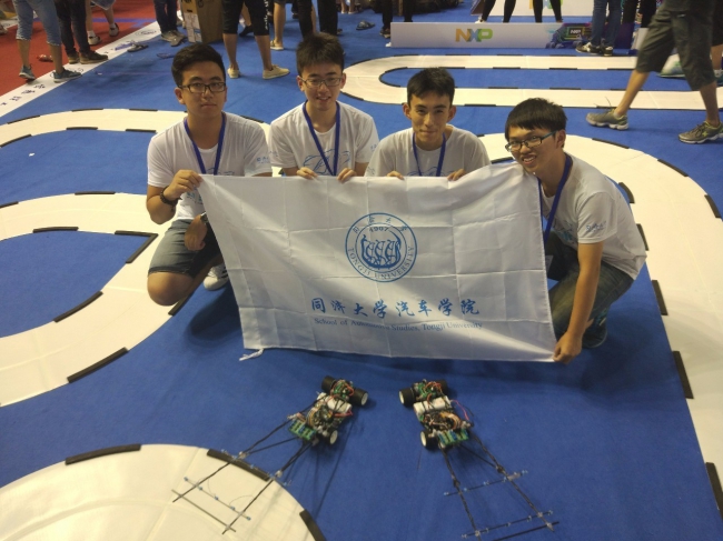 李秋键、杜博宇、陈贤钦、杨震宇、刘颖组成的“TUSmart队”在全国总决赛四旋翼导航组的激烈比赛中竭尽全力发挥出色,并最终获取创意奖。由电子与信息工程学院的同学组成的代表队也成功获得双车对抗组和光电四轮组的全国二等奖。