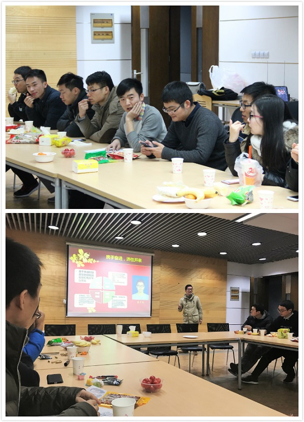 首先,张光辉从班级平均学习成绩、获得奖学金情况、班级凝聚力、所获荣誉等方面对过去一年的班级工作进行了总结,也对党支部对班级工作的大力支持、热心奉献表示感谢;随后,每位同学围绕开题情况、科研难题、收获总结及展望目标进行了PPT展示与分享。通过这个环节,同学对不同研究方向的研究内容有所了解,互相取长补短,。大家对自己的2016年进行了总结,同时也对2017年的新生活充满着期待与憧憬。