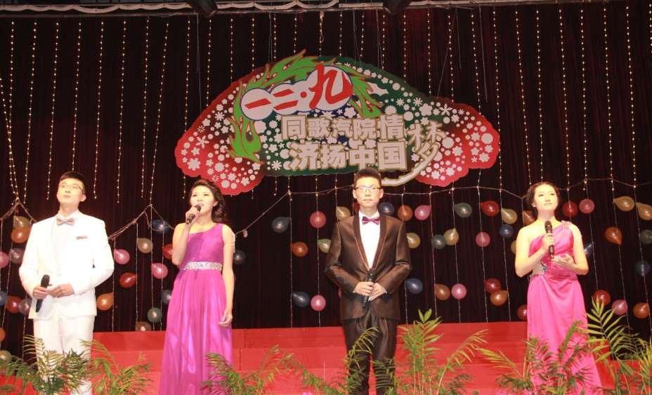 一二·九歌会自2004年举办至今已有10届,旨在让同学们勿忘历史,将革命先辈们的爱国精神传承下去。今年正值党十八届三中全会召开,深化教育领域综合改革。本届歌会以“同歌汽院情,济扬中国梦”为题,分“追忆红色岁月”“闪耀锦瑟年华”“温暖追梦征途”三大篇章。
