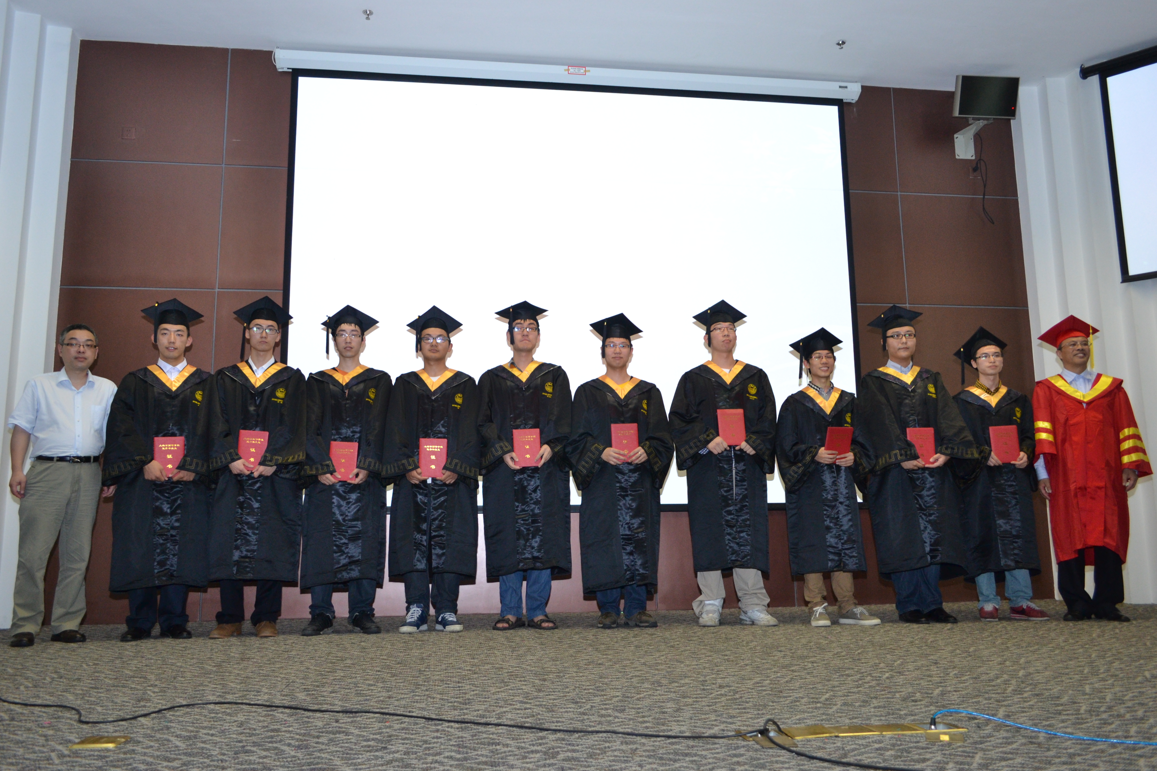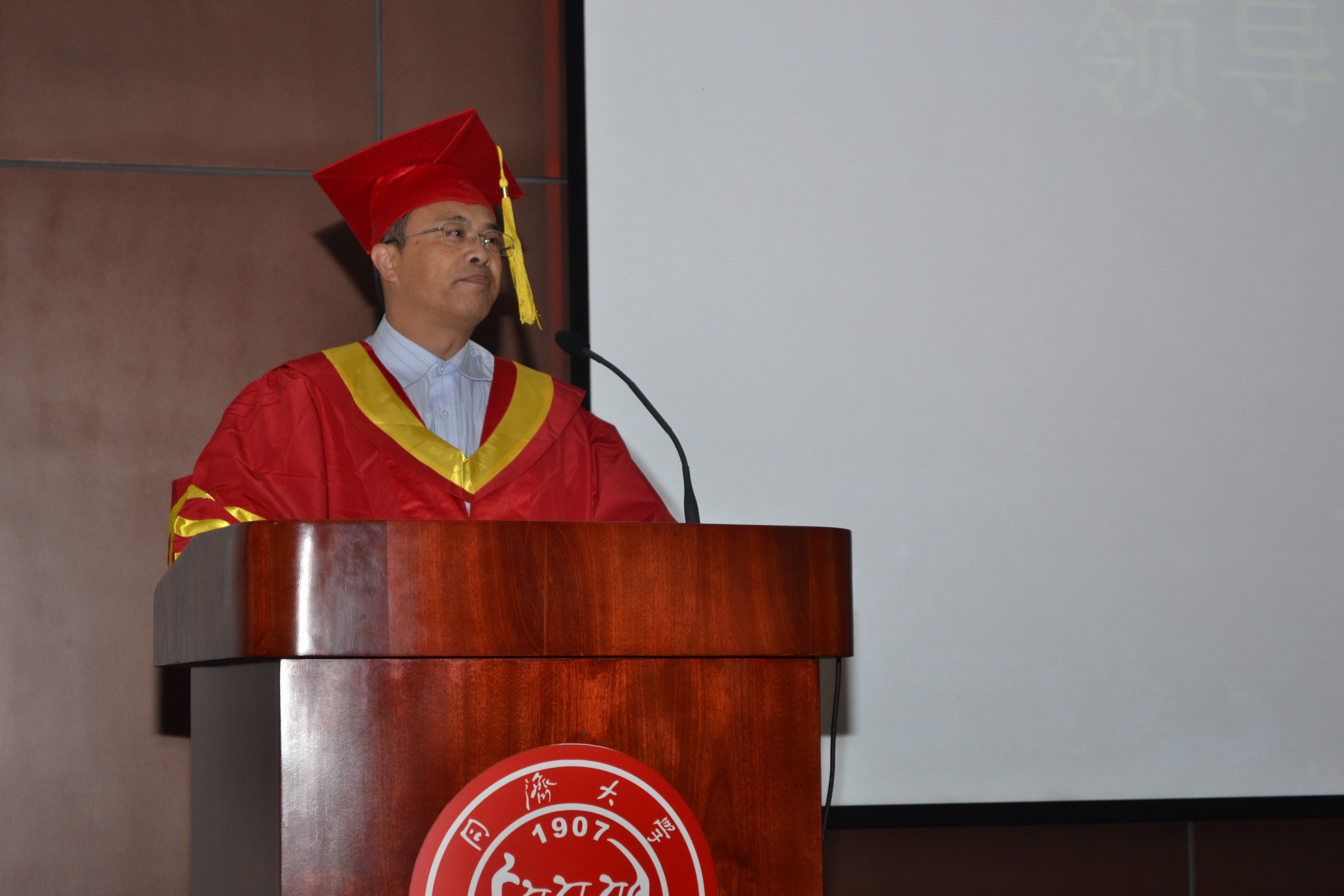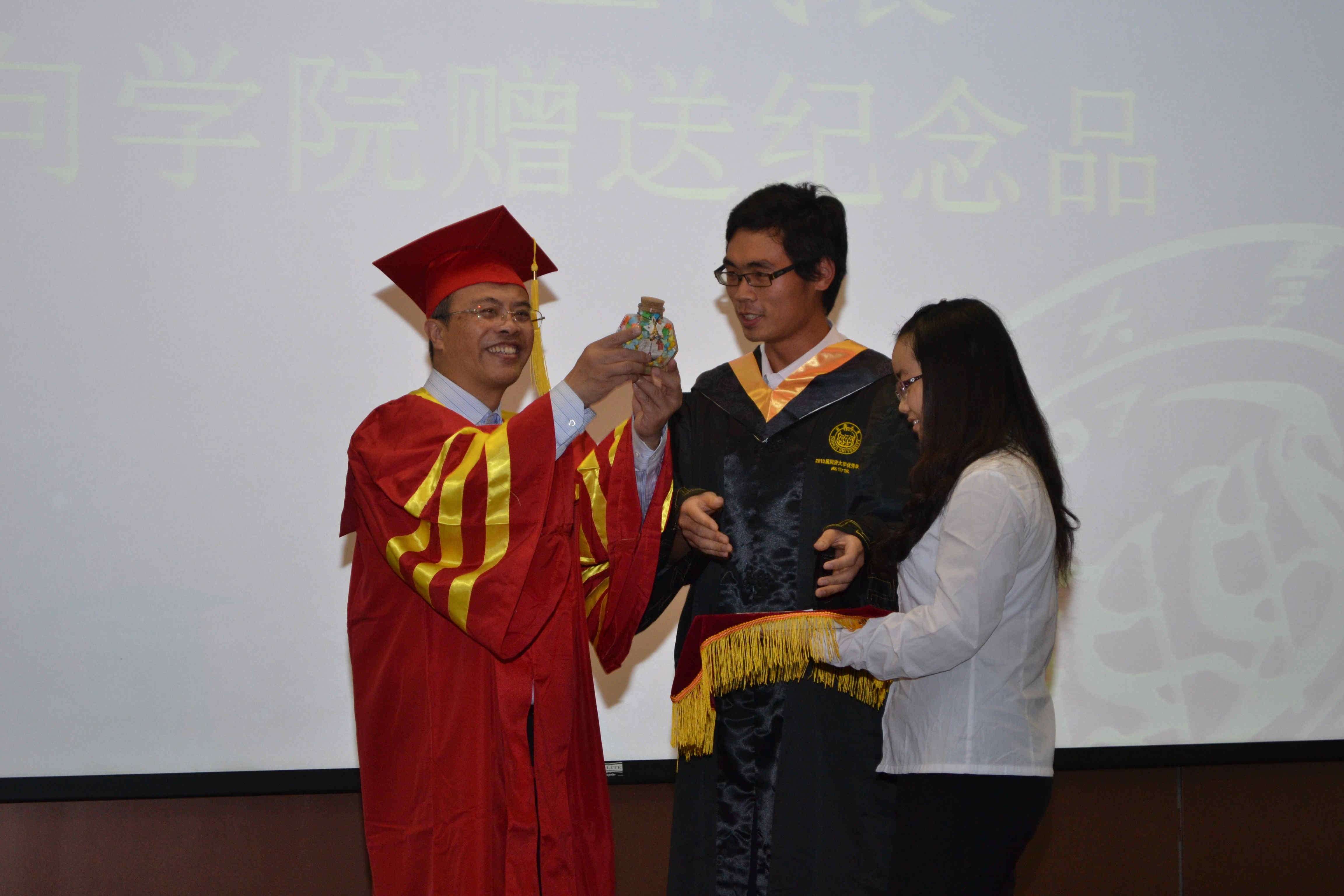 优秀毕业生名单,并与余院长、张立军老师、魏学哲老师一起为获得此荣誉的学生颁发了证书。随后余院长等十位老师为同学们颁发了学位证书并拨穗。