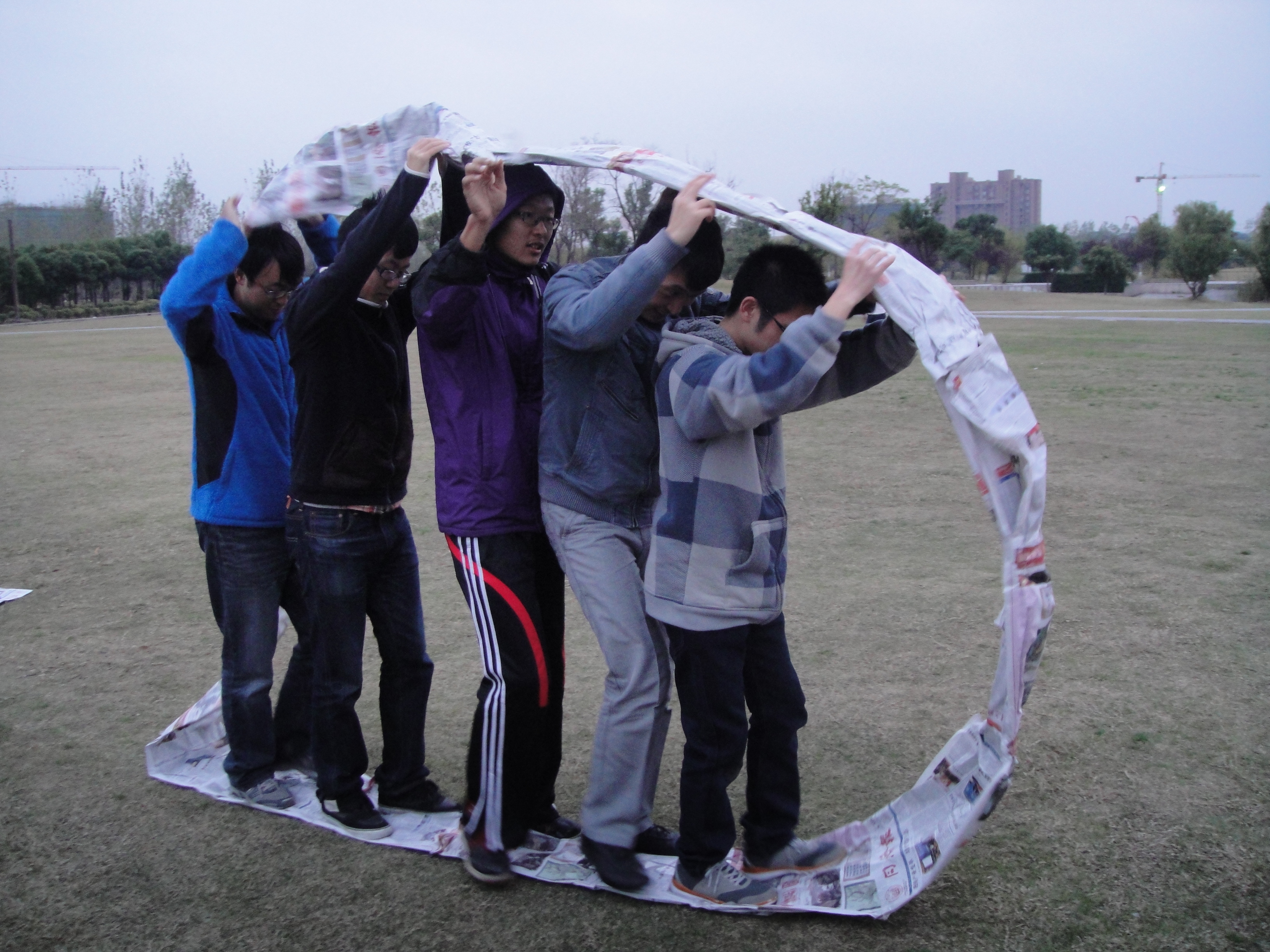 在本科2010级班长俞佳伟、张二奇同学的组织下,本次素质拓展分为两个环节:首先,大家做了“直呼其名”的游戏,通过这个游戏,各位班长通过自我介绍和相互间直呼其名,逐渐熟悉了彼此。随后,班长们被分为三组,开展了“无敌风火轮”比赛,旨在促进班长们在分工合作中增进了解,大家用旧报纸自制工具,随后展开激烈的比赛,最终095班长陆恺迪等同学所在小组以一分零四秒的成绩夺得了冠军,在一片欢笑声中,本次素质拓展活动圆满结束。
