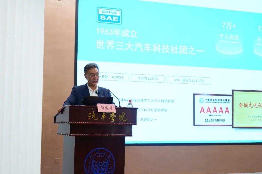 闫老师首先介绍了我国SAE的具体定位,作为学术组织,中国SAE目前与美国SAE、日本SAE并称为世界三大汽车科技社团。目前我国SAE的会员已将近20万。SAE可以简单理解为政府在汽车产业的智库。其主要业务涵盖战略研究、学术交流、CSAE标准的制定等。推动汽车行业前沿科技的发展,并以非政府性组织的身份推进行业的协同创新。并且SAE致力于行业的文化科普以及人才培养,例如组织举办FSC大学生方程式汽车大赛等。