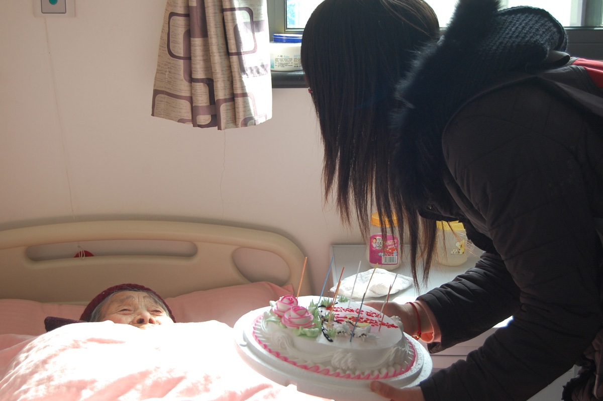 志愿服务活动当天,60多名同学,准时集合后前往敬老院。顺利抵达后,我们分成两批:一部分人前往本月恰逢百岁生日的老奶奶房间里,和她的室友一起为老人举行了一个简单却无比温馨的生日仪式,同学们祝愿老人健康长寿,和老人聊天。寿星深深地沉浸在生日的愉快气氛之中,周围的老人们也吃的蛋糕高兴地笑着;另外一部分同学,则走进了老人们的住所,在一个个房间里和老人们促膝长谈,了解他们的快乐和烦恼,给他们讲述当今社会的时闻趣事。近两个小时的时间,一眨眼就过去了。部分同学由于接下来有课,不得不暂时告别老人们。我们和老人们约定以后有机会就会常来看他们。