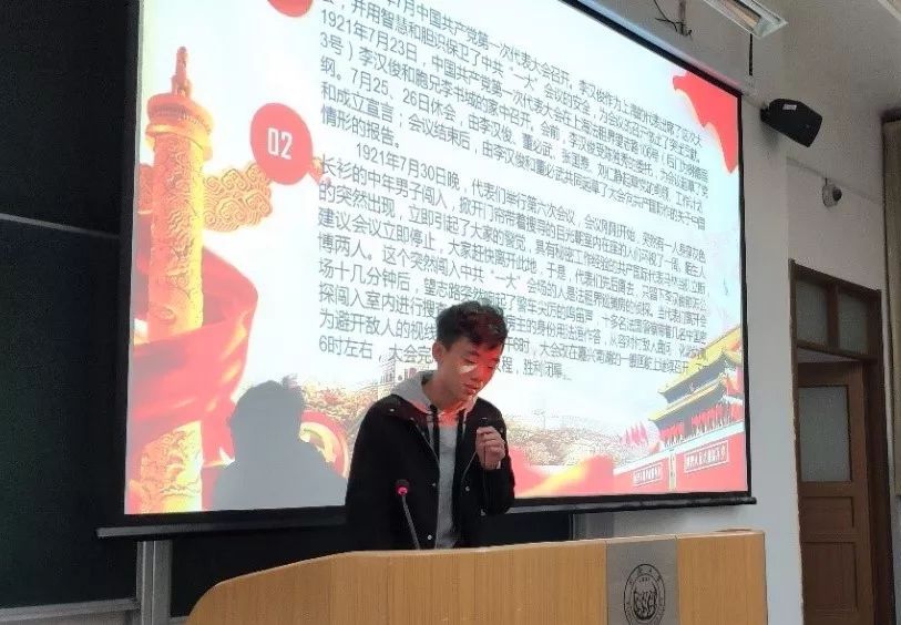 本次年级大会由年级辅导员丁大增老师主持。由4位同学担任“讲述人”,分别介绍其中4位参加过中共一大的先辈入党的心路历程。新颖的形式也引发同学们的兴趣,吸引更多的同学向党组织靠拢。