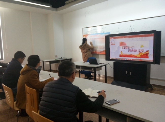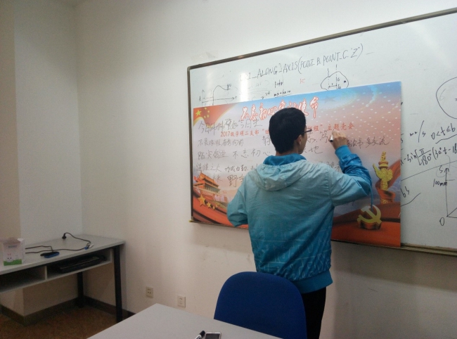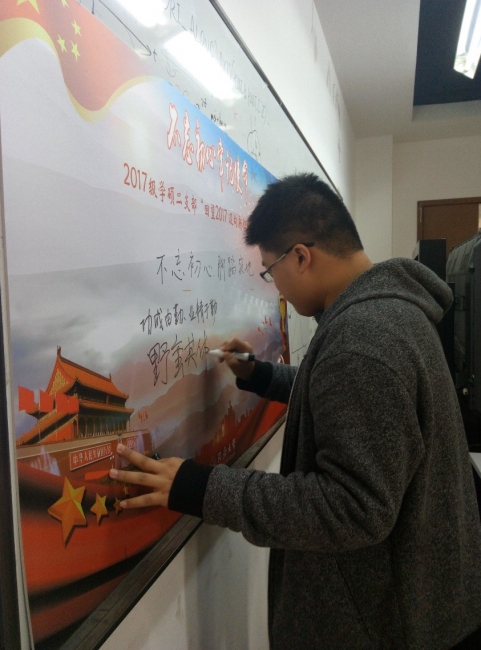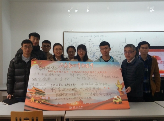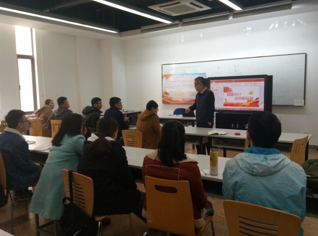 2017年12月27日中午,2017级学硕二支部举办了“回望2017,迈向新征程”主题活动,组织支部所有党员回顾支部自成立以来开展的各项工作与活动,观看“党的历史缩影之回顾历次党代会”微党课,并号召所有党员回顾2017展望2018,最后每位党员在留言板上写下了对自己的要求,提醒自己2018年向着目标努力奋斗。联系本支部的党委委员、疯情书库