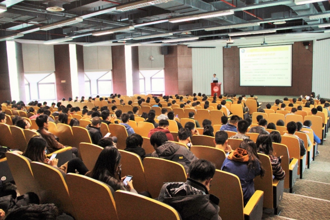 政治与国际关系学院院长门洪华老师作为主讲嘉宾,学院党政领导、老师及学生党员共200余人聆听了此次报告。