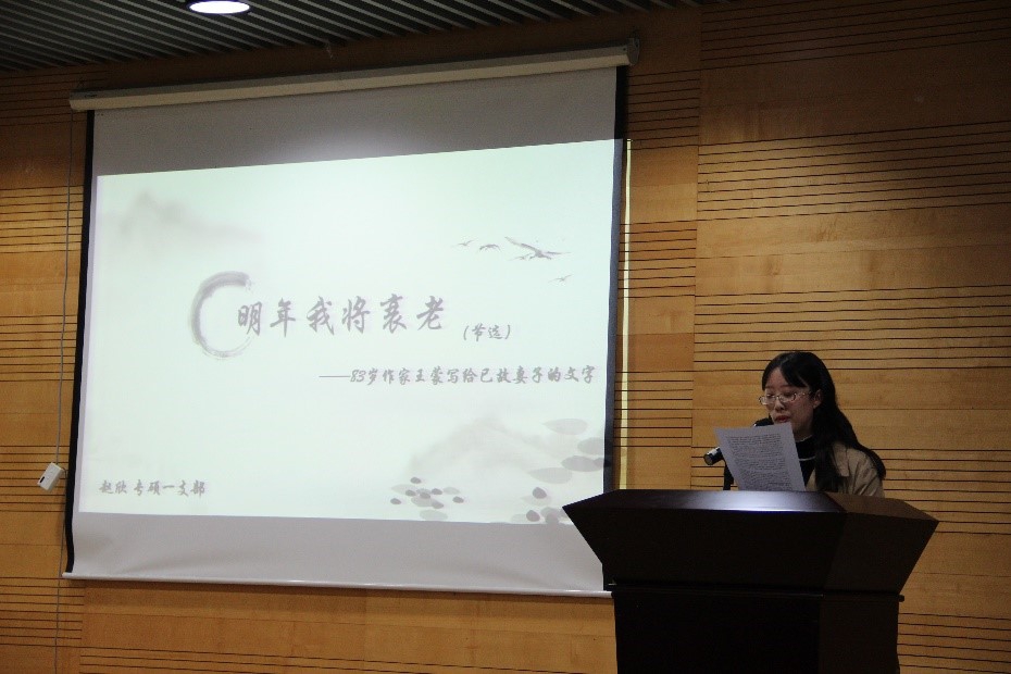参赛同志通过前期认真充分的准备,用声情并茂的朗诵表演给大家带来了一场别具一格、精彩纷呈的听觉盛宴,每一位朗读者都让在场听众感受到了阅读的魅力、语言的力量。孟哲同志的《党旗颂》读来铿锵有力,荡气回肠,进一步坚定了现场同志们对中国共产党的理想信念,赵欣同志带来的《明天我将老去》以小见大,通过表达作者对亡妻的追念引发听众对生活的哲思,石慧茹同志饱含深情的《怎能没有你,可爱的祖国》让同学们感受到作为中华儿女的骄傲和自豪,评委和听众纷纷为之动容、鼓掌叫好。通过评委打分,以上三位同志最终胜出,获得奖励。