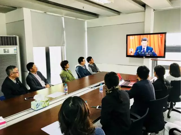 学院党政领导于学院大厅与师生观看十九大直播