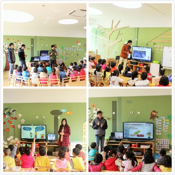 活动主要分为汽车文化宣讲、你问我答和汽车模型制作三个环节,结合幼儿园“交通月”的主题,利用志愿者们对汽车知识和汽车文化的了解,以小朋友喜闻乐见的形式向孩子们普及汽车安全知识,并与他们进行游戏互动。
