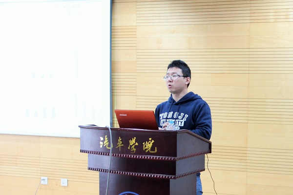 随后,两位优秀的博士生分别对各自的研究课题做了专业严谨的讲解。阚泽超的演讲主题是《柴油机高原起动着火燃烧特性》,研究了重型柴油机不同海拔下冷机起动过程的燃烧特性问题,分析了高原起动困难现象,揭示了高原条件下柴油机起动过程中不同燃烧形态的出现机制,分析了高原和平原着火历程的反应路径和关键反应产物存在差异,初步探索了柴油机高原起动控制方法,该研究成果获得了中国内燃机学会第九届学术年会会议一等奖。赵老师就模型控制问题与阚泽超进行了详细的讨论。张老师充分肯定了阚博的工作,并与阚博在柴油机高原起动中的燃烧特性进行了深入交流。