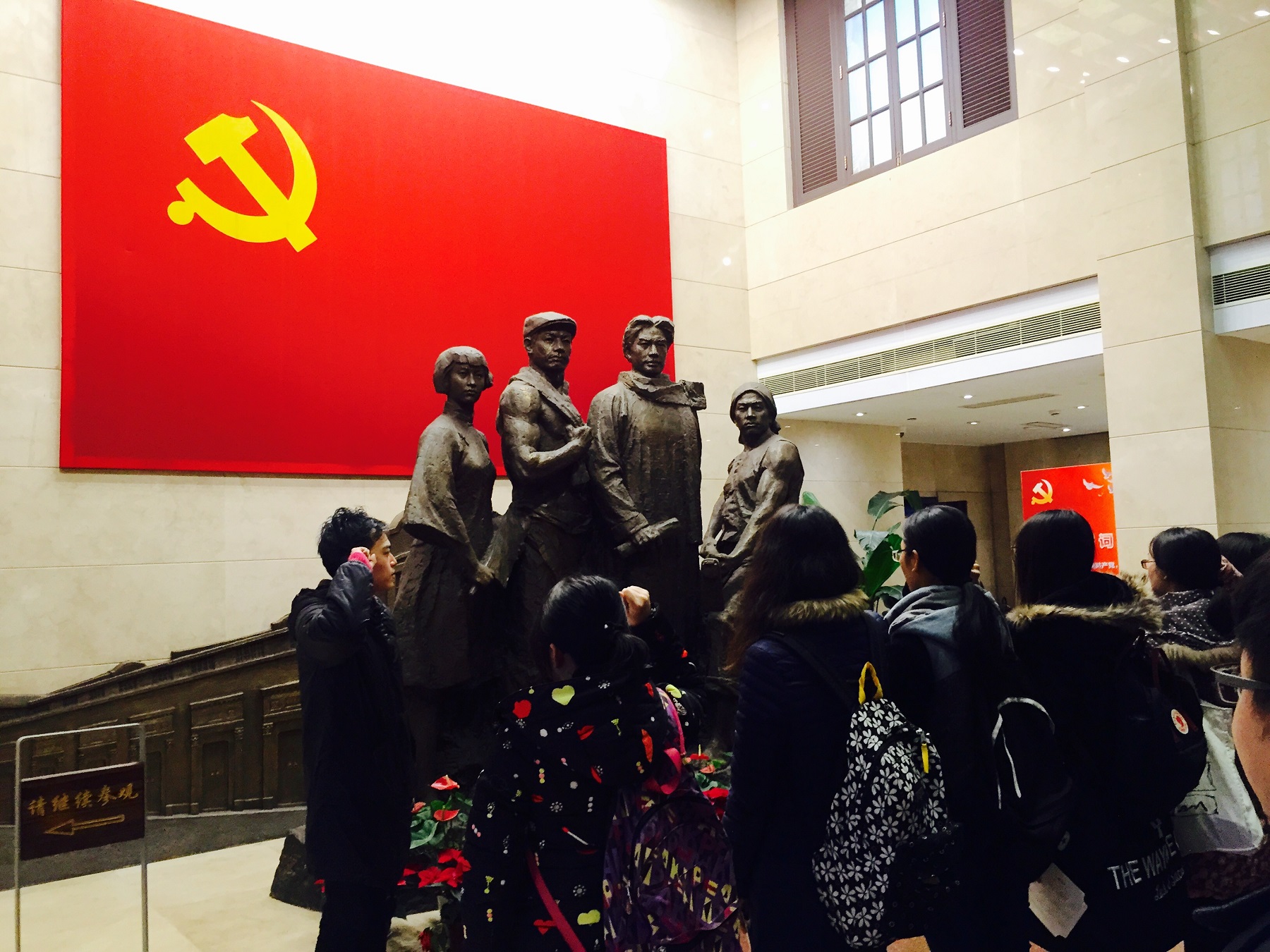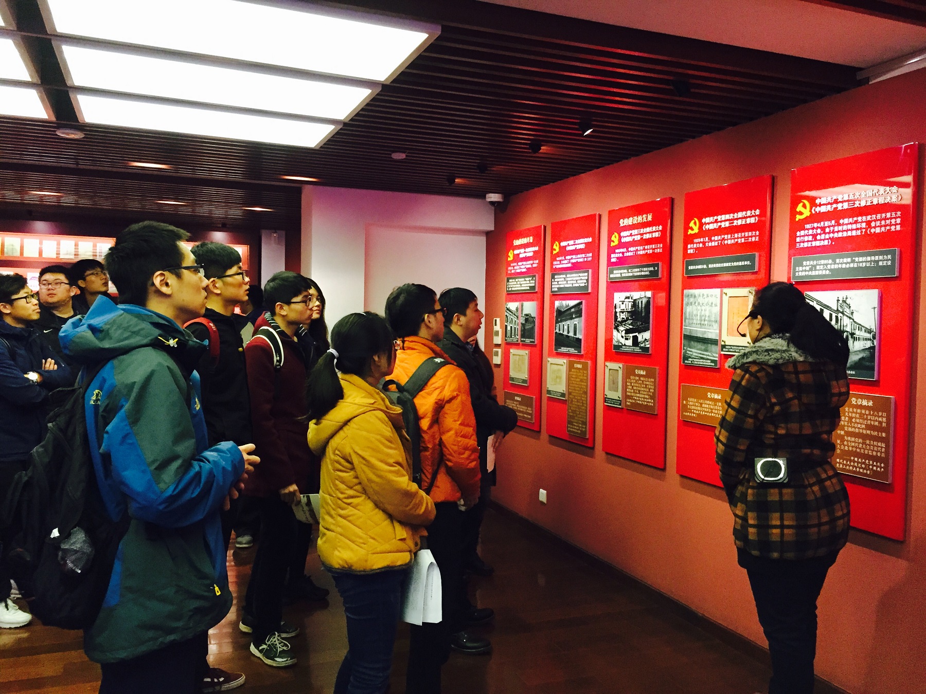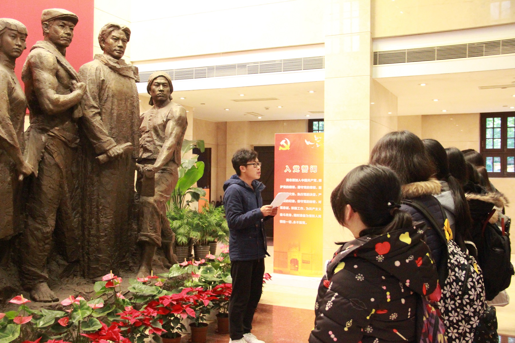 2015年度新发展党员入党宣誓仪在中共二大会址举行,参加本次宣誓活动的有32名2015年度新发展的预备党员以及新上岗支部书记、支委,学工办葛畅老师、曹卢老师参加了本次活动。