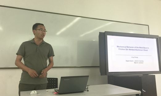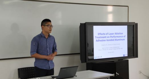 的刘寅童博士他对近期车用发动机技术发展趋势进行了分析以及成果介绍。他的报告系统而完整,得到了点评嘉宾的一致认可。随后,机械与能源工程学院的张铃博士为大家带来了他的讲演——《Mechanical Behavior of the Weld Bead in Friction Stir Welded Aluminum Sheet》,张铃博士结合在企业的项目经验,进行了生动、具体的阐述。最后,同样来自机械与能源工程学院的吴泳荣博士进行了题为《激光表面处理对铝合金胶接性能影响》的报告,他向大家讲解了研究的意义、思路、方法,以及企业与学校科研的结合点,令人印象深刻。二位博导对吴泳荣博士的讲演赞赏有加,并肯定了跨学科交流的重要意义。