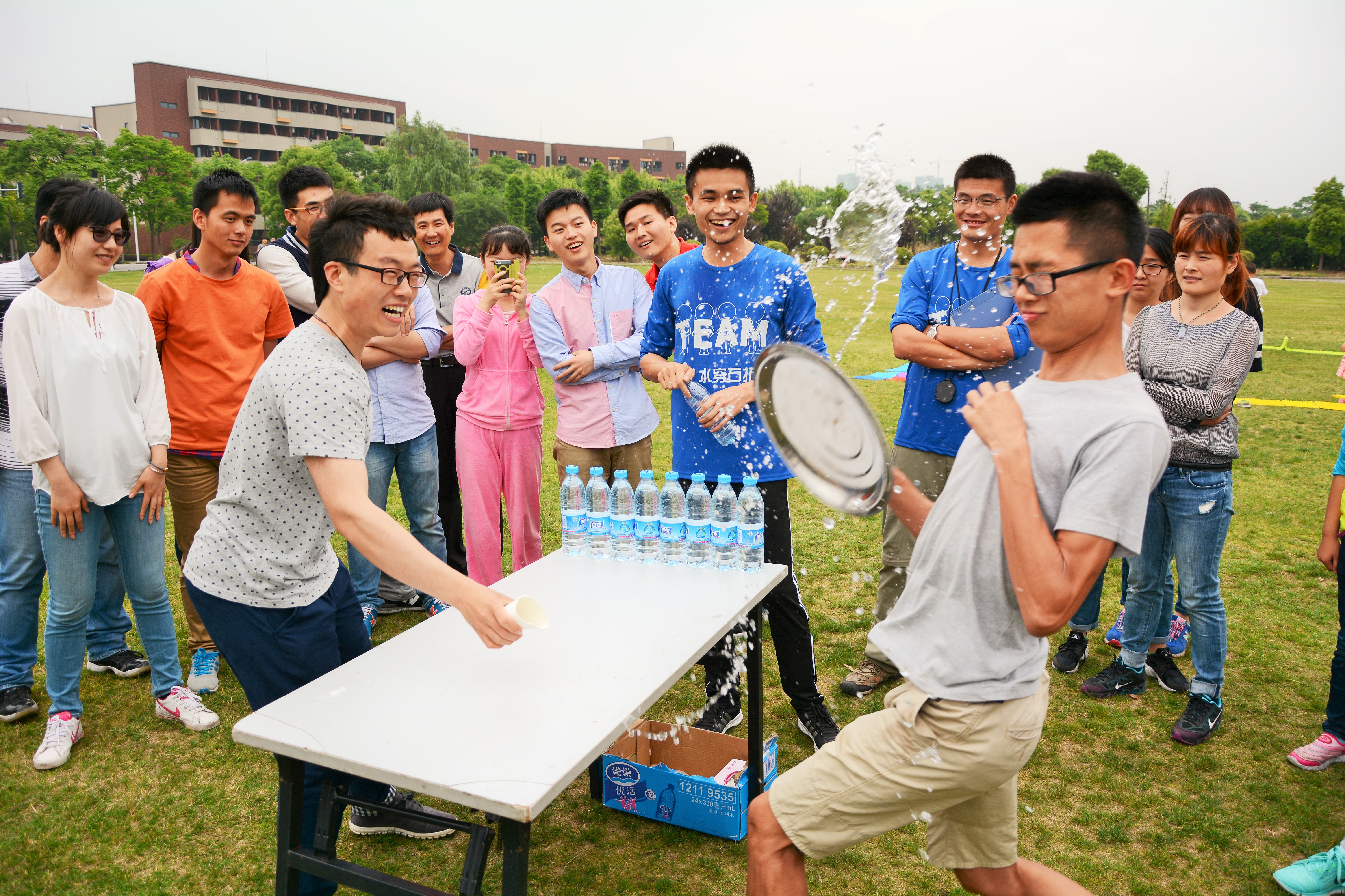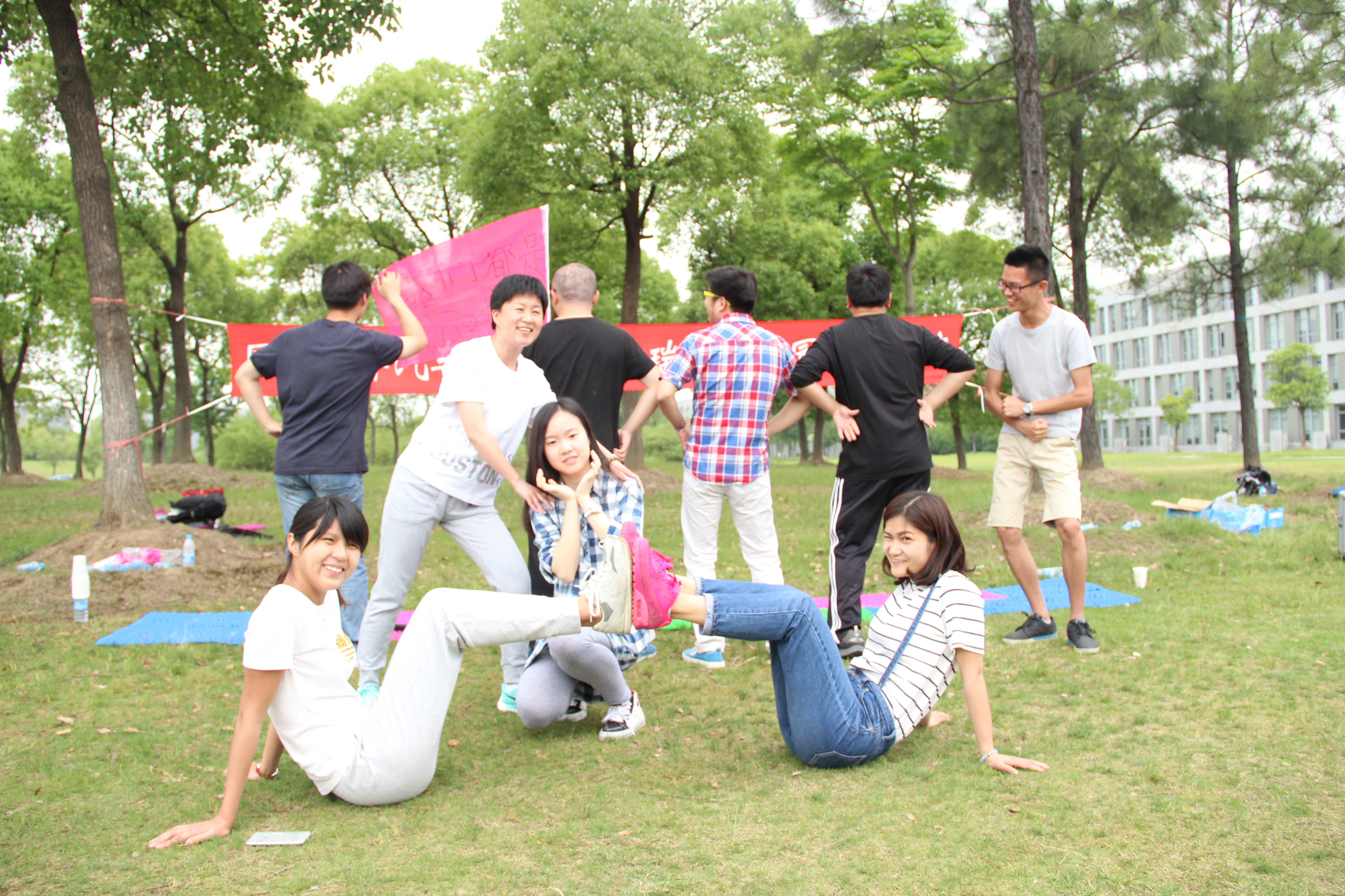 下午,素质拓展活动继续开展,首先进行了桃花朵朵开等舒展运动,接着“超级指压板”——障碍翻越赛和“让我们溅溅在一起”——猜拳泼水比赛把整个活动的气氛推向了高潮,在活动中,大家彼此通力合作、紧密配合,共同体会团队合作的力量,给彼此都留下了珍贵的回忆!