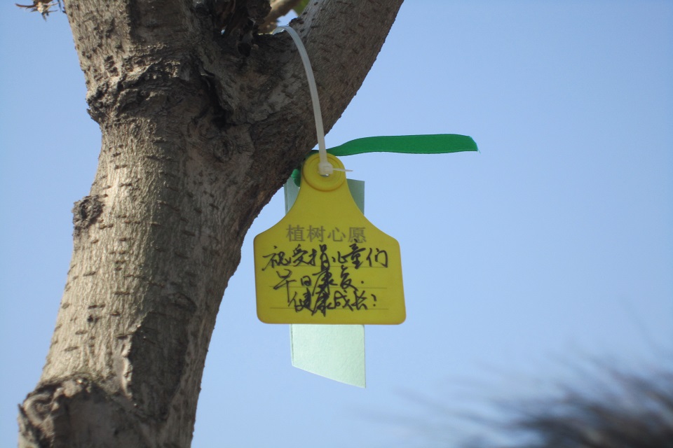同学们在一张张卡片上写下了自己的愿望,挂到了刚刚栽好的树苗上,希望环境越来越好,树木茁壮成长,表达了对儿童患儿的关心,希望小朋友健康长大,以及新的一年的美好愿望。看着这些刚刚种下的树苗,看着一片片嫩叶随着春风微微的摆动,我们的心情也被这一抹绿色感染,充满了新生的希望。看到这么多的群众和我们一样参与到植树活动中,每个人的心头都多了一份温暖和信心,我们每个人都越来越关注环保,关爱生命,整个社会正在向着和谐发展的目标一步步前进。