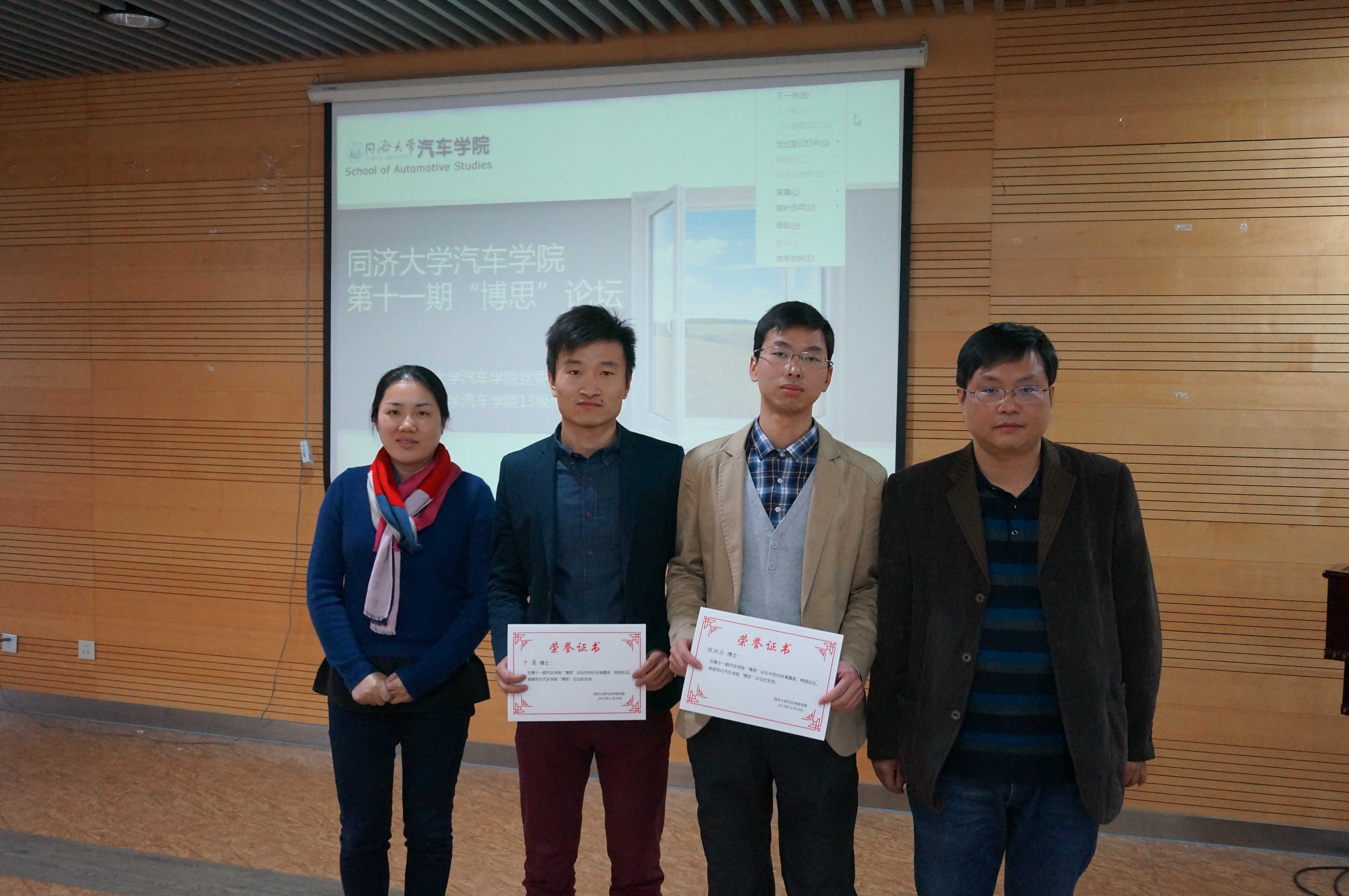 讲座结束后,由林瑞老师和赵治国老师向两位主讲颁发了荣誉证书并合影留念。