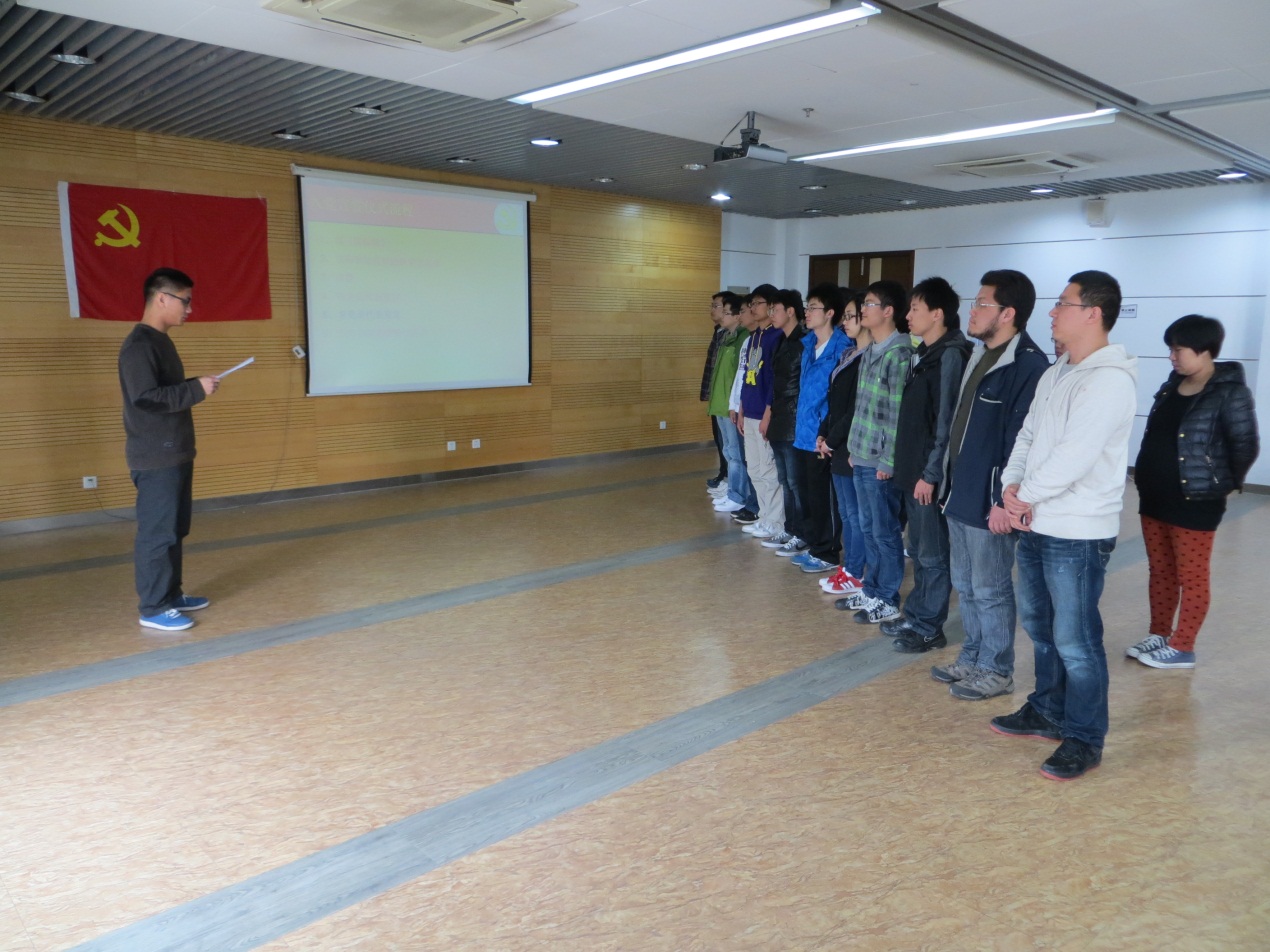 13级博士阚泽超同学代表新党员发言。他在表达自己的激动心情后,代表全体新党员表示:加成为中国共产党预备党员,不仅是我们人生历程中的一个转折,也是政治生命的新起点,激动和幸福之余,要保持更加清醒的头脑筹划未来的工作、学习和生活,并代表所有新党员表明了为共产主义事业奋斗的坚定决心。李凡同学代表老党员发言,他提出:大学生党员应坚持理想信念不动摇,经受住各种考验,在实践活动中争当排头兵,以实际行动捍卫共产党员的光荣称号。