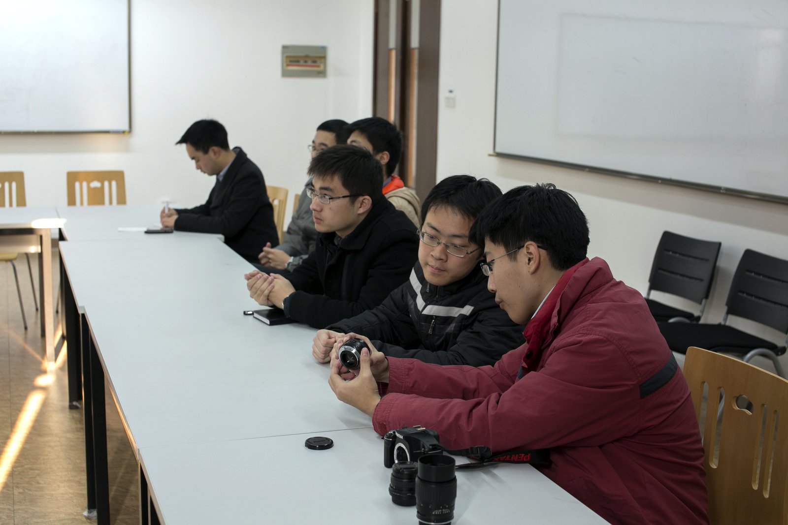 张乐希现为复旦大学医学院医学博士生,复旦大学摄影协会副会长,是资深摄影发烧友。讲座中,张乐希结合自身医学专业,通过解释人眼的原理阐明单反相机的工作原理,并对光圈、快门、感光度等摄影基本常识做了介绍,还就现场所带摄影器材介绍了数码摄影时代相机和镜头的相关参数。除了基础性的理论讲解外,张乐希实例分析了摄影中不同视角所达到的不同效果以及正确的用光和构图手法,通过一幅幅摄影作品让大家对“如何拍出一张好照片”这一终极问题有了非常直观的感受。在介绍摄影知识的同时,张乐希就市场现有的各档次摄影器材做了对比分析,对大家日后购买相机与镜头起到很好的指导作用。