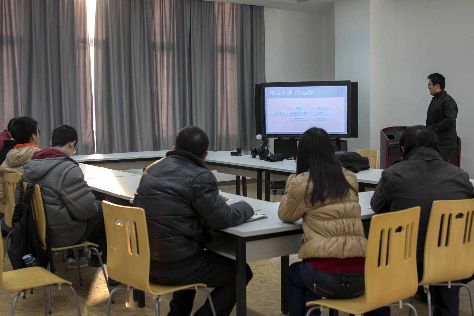 在互动问答环节,张乐希认真回答了同学们的疑问,包括专业知识和器材选购。最后,大家踊跃试用张乐希自带的尼康D700、佳能5D Mark Ⅲ等摄影器材,实际感受和体会了讲座中涉及的知识。试用交流后讲座圆满结束。