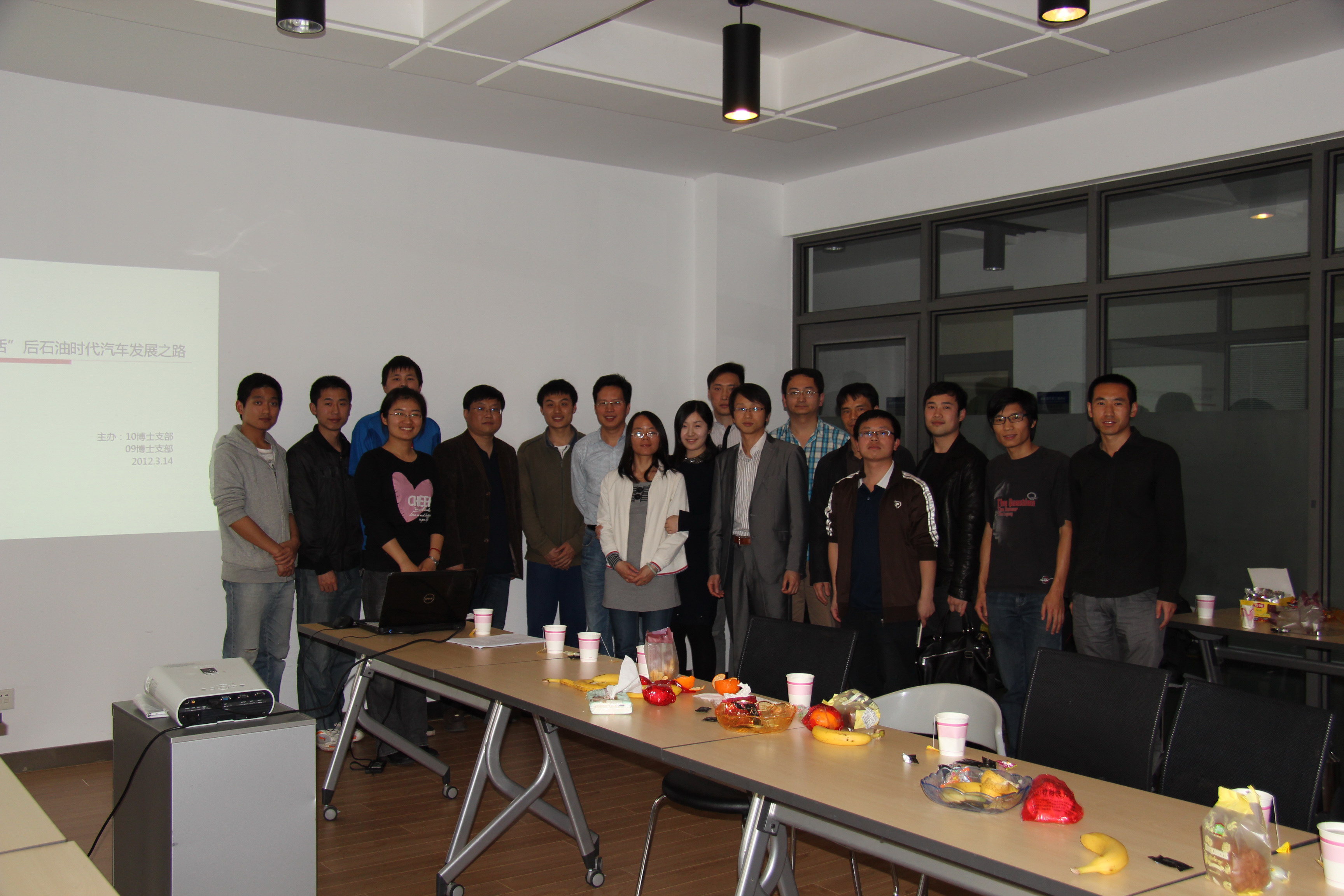 自2011年开始举办“博思”分论坛,每学期举行2次,本次已是第五期。本次“博思”分论坛以“绿色汽车发展”为主题,从博士生的视角出发,对后石油时代下汽车所面临的能源和环境问题,新能源汽车的实用新技术和产业化问题作了多角度和深入的交流。作为本次分论坛的既定内容,来自10级的两位博士研究生应邀作了关于“绿色能源”的主题演讲:首先,杨蓉同学作了题目为“乙醇柴油和BED混合燃料的稳定性实验及发动机性能研究”的演讲,她就自己的研究课题和与会的同学一起畅谈了自己科研经历,科研感受,并进行互动交流,气氛友好而热烈;随后,黄会波同学作了关于“绿色能源动力氢能燃料电池技术”的演讲,他就留学日本期间的所见所闻和对氢能燃料的见解,给大家作了一次氢能技术的展示,扩展了大家的视野。