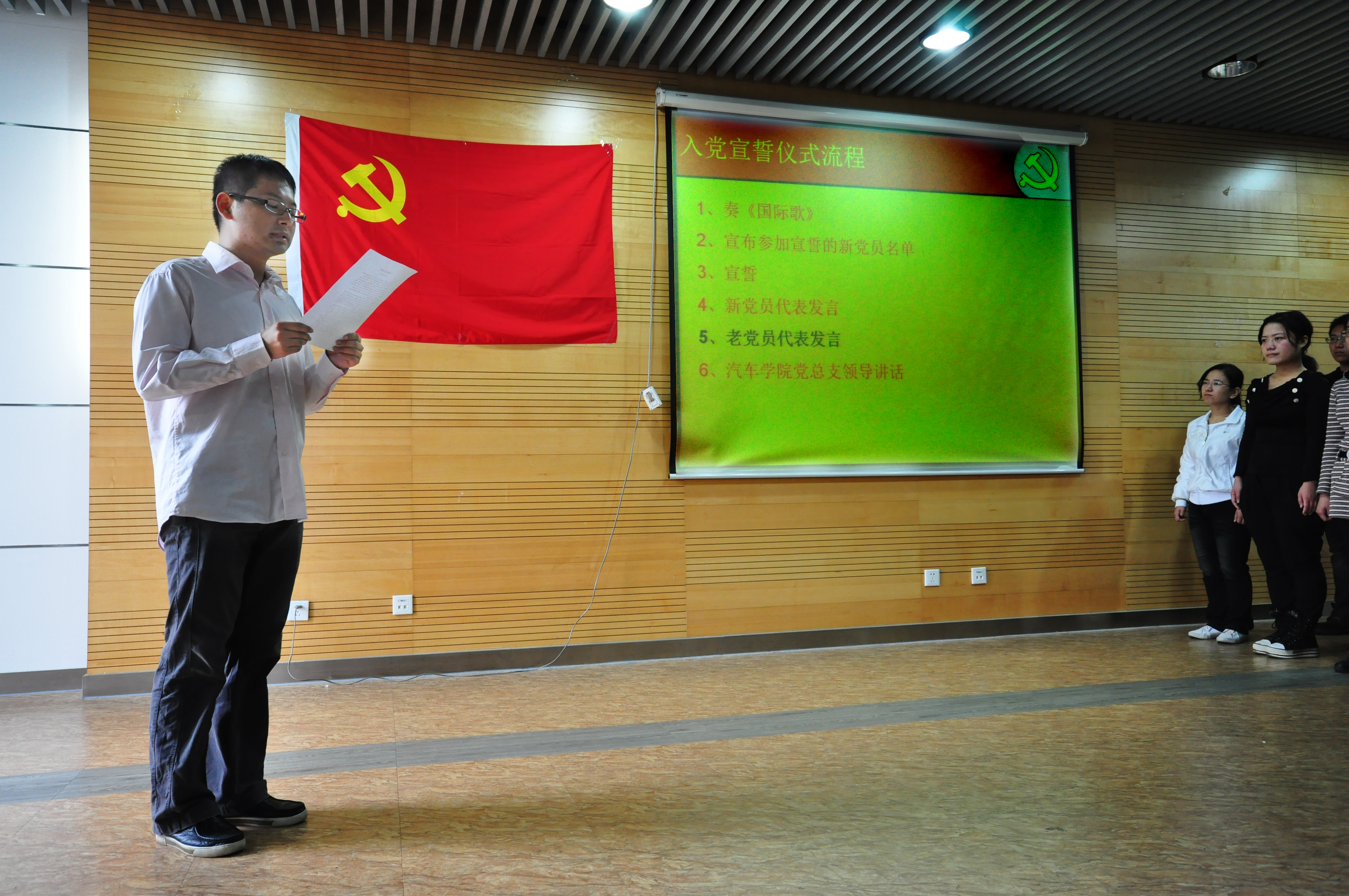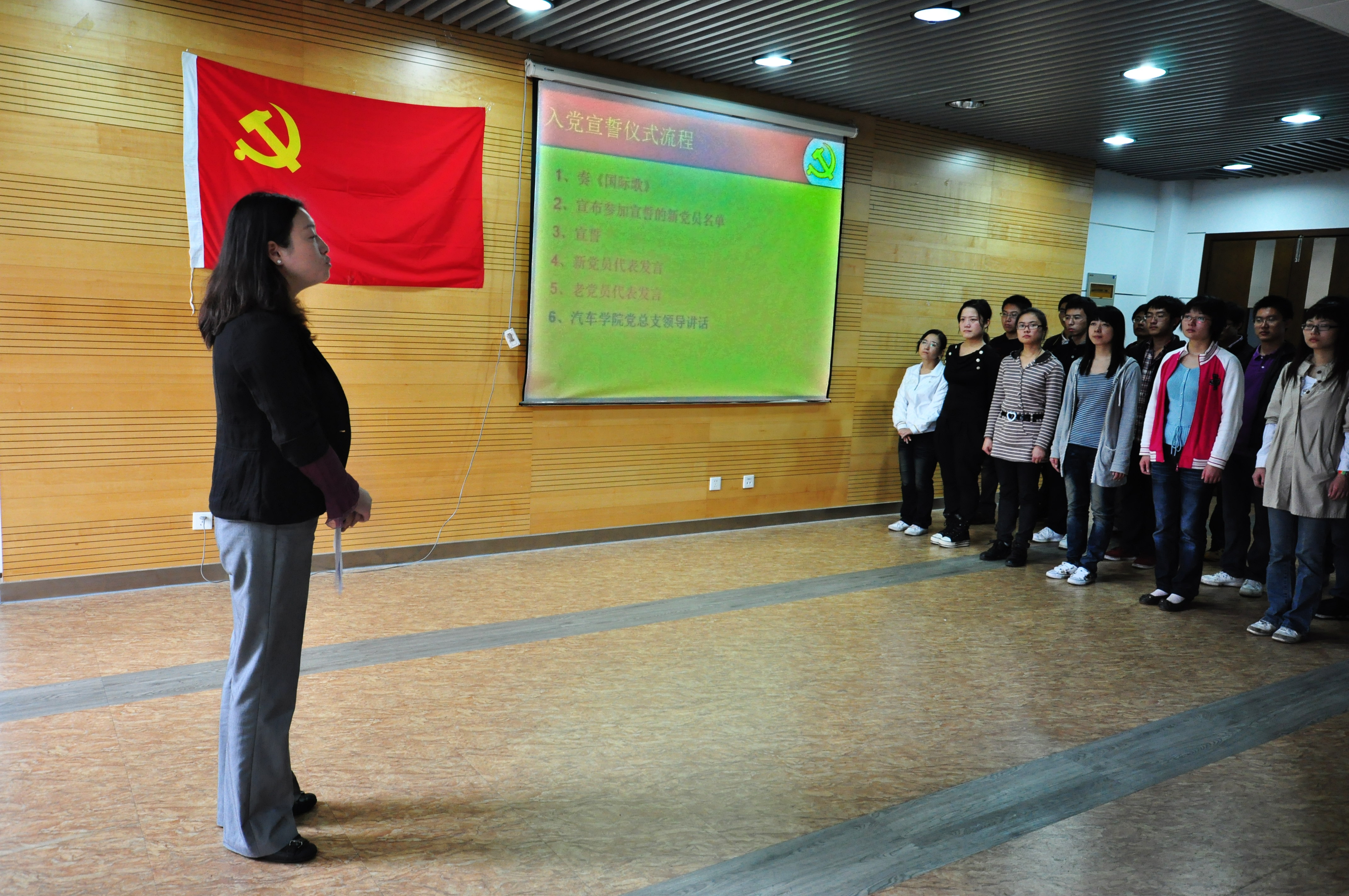 每学期举行一次入党宣誓仪式,组织上一学期发展的新党员集体进行宣誓,让新党员通过这样的仪式教育更加严肃认真地对待“中共党员”这一光荣称号以及其中包含的责任。