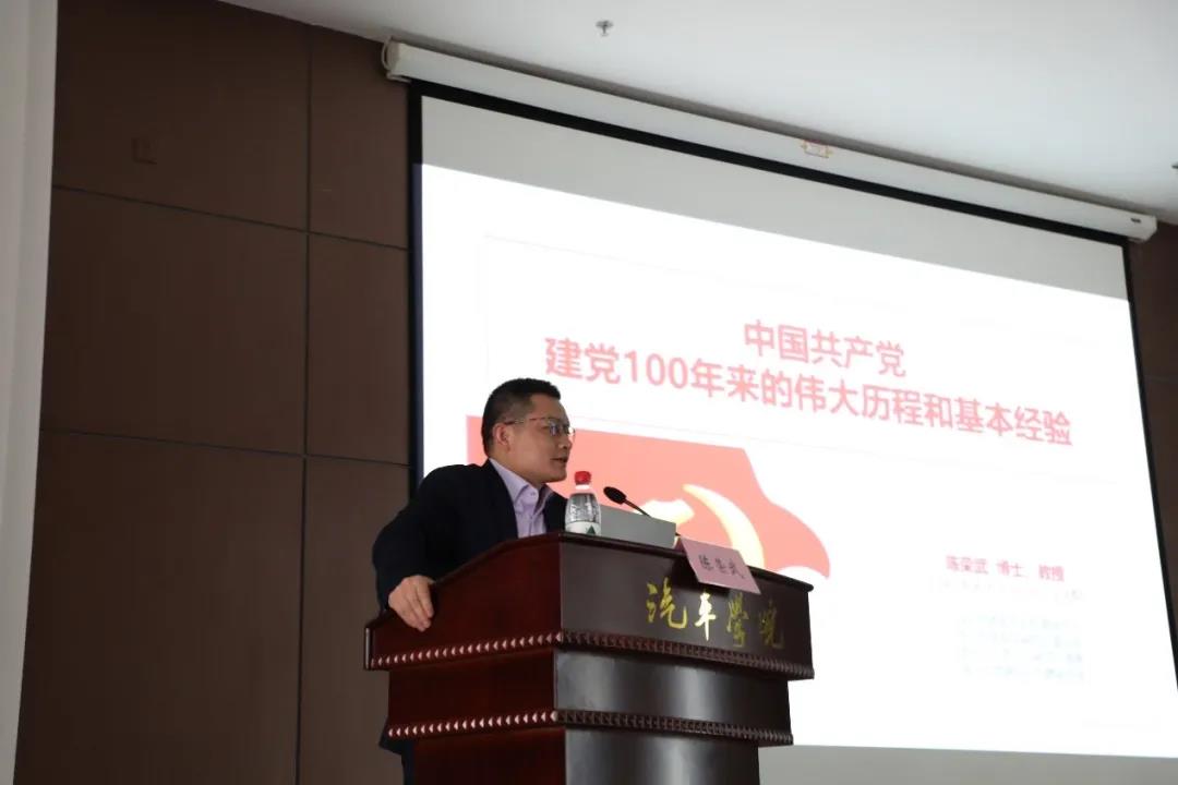 第四十三期“同车行”党委特邀报告于新能源汽车工程中心二楼报告厅举行,上海市党建研究会特邀研究员、上海市形势政策研究会副会长、上海市马克思主义研究会理事陈荣武教授应邀为学院师生党员带来“中国共产党建党100年来的伟大历史进程和基本经验”的主题报告。学院班子成员与两百多名师生党员共同参与了此次学习。