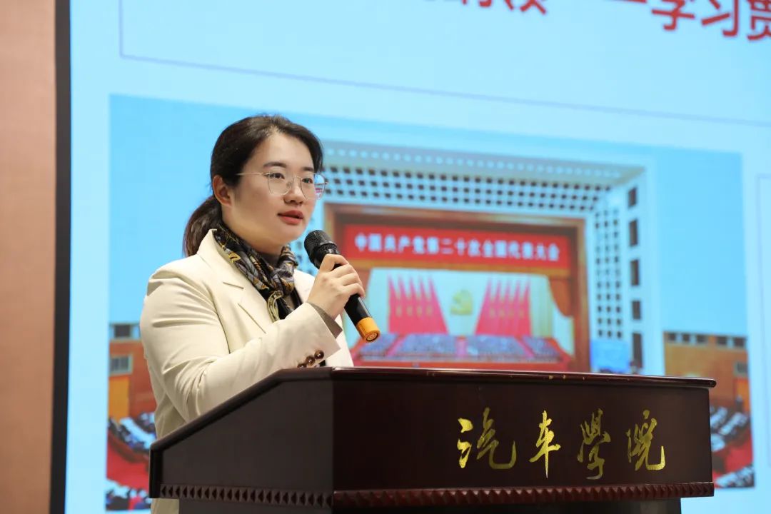 持续把学习宣传贯彻党的二十大精神作为学院党委的重要任务,立足“七个有力”,固本强基夯实基层组织建设,启动首届“引擎计划”学生骨干训练营,组建“汽车青年说”青年学生讲师团,与企业、社区、中小学开展共建交流,以学促讲、以讲促学,以“青年化”阐释让党的二十大精神入脑入心。同时,把深入学习贯彻党的二十大精神所汲取的信仰力量转化为推进学院各项事业发展的强大动力,广泛围绕人才培养和学科发展开展研讨交流,积极协同校友及企业资源开展调研实践,凝心聚力建好全国高校“百个研究生样板党支部”、“上海党建工作标杆院系”、上海高校“百个学生样板党支部”,全面推动学院党建工作谋新篇,学科建设开新局,人才培养创新绩,文化传承谱新曲,引领广大汽车师生为全面建设社会主义现代化国家、全面推进中华民族伟大复兴而团结奋斗!