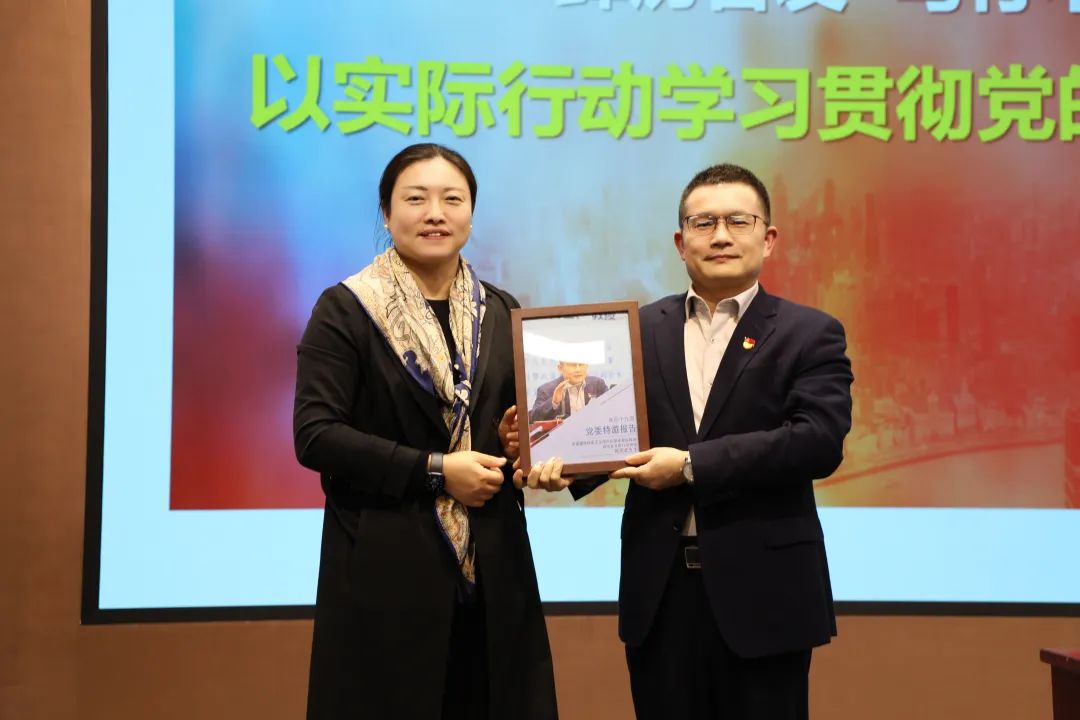 党委书记曹静老师为陈荣武教授赠送了“同车行”党委特邀报告纪念照。