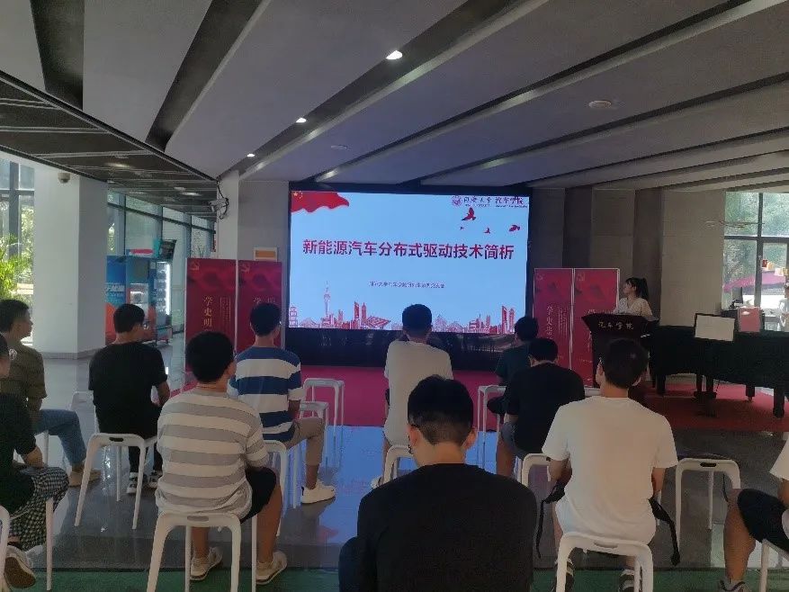 活动的第二部分由研究生第四党支部的孔爱静同志带领大家共同学习新能源汽车分布式驱动技术。