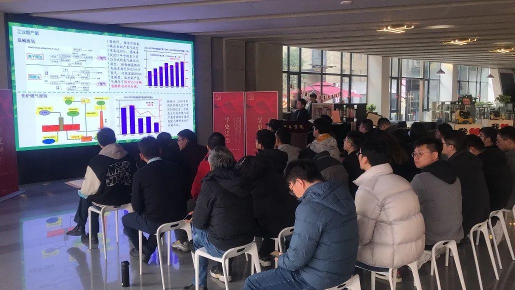 第二部分则是由毕松虎同志为我们带来专业知识分享——制氢技术及其成本分析。在碳排放导致全球气候变暖的大背景下,以低碳减排为目标的能源革命正在全球范围内展开。为减少对化石能源的依赖,在提出2030年碳达峰和2060年碳中和的双碳目标后,中国能源结构转型正在奔跑加速。氢能作为二次能源具有能源和储能两重属性,在能源转型里扮演非常重要的作用,在能源供给端可大规模、高效吸纳可再生能源和发电,调节可再生能源的波动,提高能源系统的韧性。但氢能发展任重道远,其中最为关键的问题是制氢、用氢成本仍然较高。毕松虎同志从当前中国氢能的发展背景、氢气的生产与成本、风光资源分布三个方面来为我们简单介绍了氢能发展的大方向。在座师生很多都是以氢能为研究方向的,研究生第十二党支部的王森说到:“作为氢能方向的博士生,我觉得有义务为了国家能源转型的战略贡献出自己绵薄的一份力,只有将技术握在自己手中才是硬道理”。