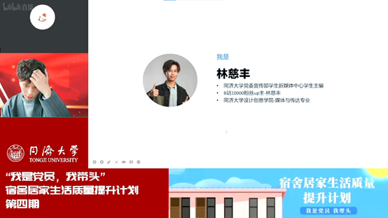 在本次直播中,林慈丰同学首先分享了自己成为一名up主的心路历程。从来到同济的第一个视频的爆火,到后面一步步坚持不懈做出了更多更高水平的视频,在这一年半的时间中,林慈丰兴趣使然又精益求精,不断磨练自己的拍摄技巧与剪辑水准,让自己在新媒体材料的制作上取得了长足的进步。