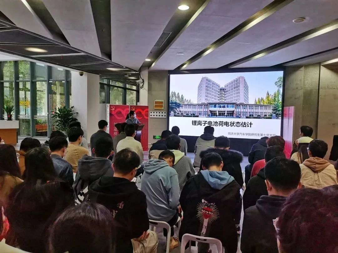 随后,由研究生第七党支部张倩倩同志带来主题为“锂离子电池荷电状态估计”的学术分享,从对锂离子电池的介绍出发,指出了不同的荷电状态估计方法的优缺点,并对具有较大应用前景的基于模型的荷电状态估计进行了详细介绍。通过建立合适的荷电状态估计模型、设计电池测试实验、模型参数辨识和基于状态估计算法进行荷电状态估计,荷电状态的估计值能较好地收敛至真实值附近。