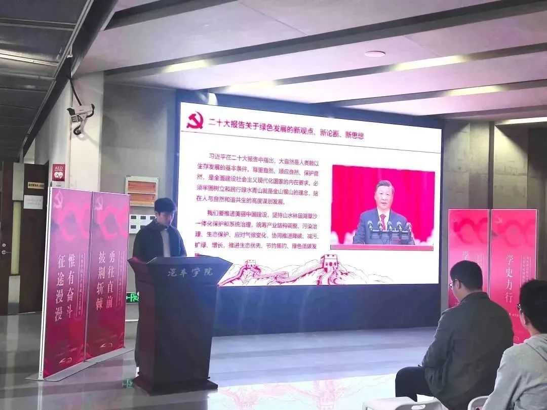首先,由研究生第七党支部黄倍铭同志带来题为“全面贯彻二十大精神,积极推动绿色发展”的理论知识分享,对党的十八大以来的绿色发展理念和实践进行了回顾,重点学习了二十大报告中关于绿色发展的新观点、新论断、新思想,介绍了汽车产业在“双碳”目标引领下的绿色转型,对疯情书库