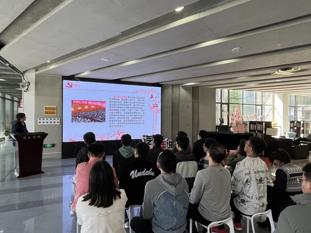 首先,研究生第十党支部任高天同学带来题目为“发展全过程人民民主,保障人民当家作主”的理论分享。他详细介绍了全过程人民民主的丰富内涵、发展全过程人民民主的价值追求以及实践遵循。指出全过程人民民主必须坚持以人民为中心和人民至上为根本宗旨,巩固和发展最广泛的爱国统一战线,不仅拥有由根本政治制度、基本政治制度和具体制度组成的一系列科学有效的民主制度程序,而且还具备包括民主选举、民主协商、民主决策、民主管理、民主监督等在内的全程贯通的民主参与环节,是一种多维度、立体化的全新民主模式和实践形态。