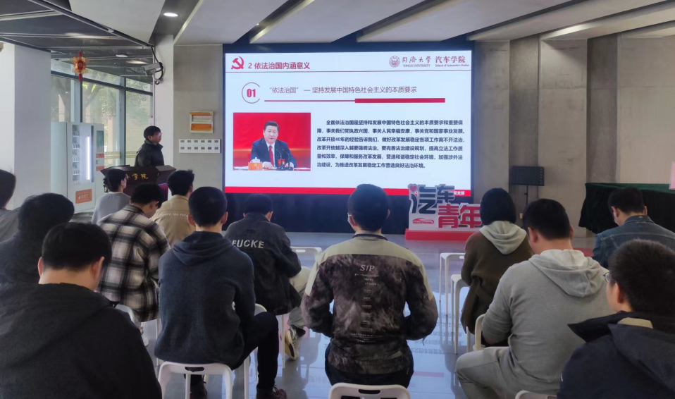 研究生第二党支部陶阿邦同学带来题目为“全面依法治国 推进法治中国建设”的理论分享。他详细介绍了依法治国的背景、内涵、发展和其价值四个方面,指出依法治国是中国特色社会主义的本质特征,推进国家治理体系和治理能力现代化的关键手段。全面依法治国是坚持和发展中国特色社会主义的本质要求和重要保障,事关我们党执政兴国,事关人民幸福安康,事关党和国家事业发展,做好改革发展稳定各项工作离不开法治,改革开放越深入越要强调法治。依法治国为我国政治、经济和社会发展提供了坚实的法治基础和保障,同时增加了我国国际影响力和竞争力。
