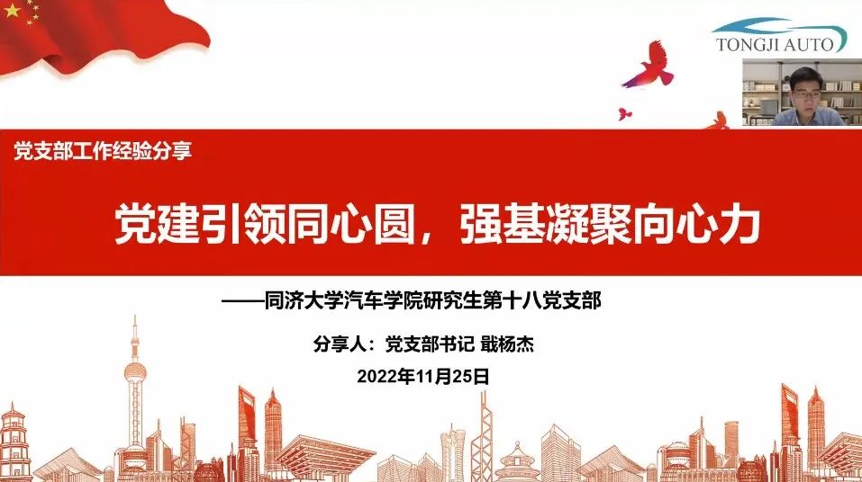 研究生第十八党支部书记戢杨杰参会并作经验分享。