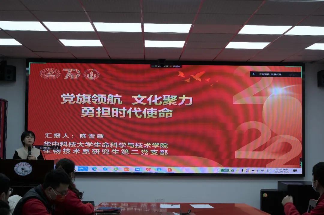 华中科技大学生命科学与技术学院生物技术系研究生第二党支部,创先争优立党风,支部营造出我为党旗添光彩的良好氛围,党支部获评全国“百个研究生样板党支部”。支部注重发挥头雁领航作用,组织党员先锋服务队,打造实验室党员示范岗、模范工作台。陈雪敏同学在校内外进行超15场支部建设经验交流分享会,为激发党建“雁阵效应”贡献力量。