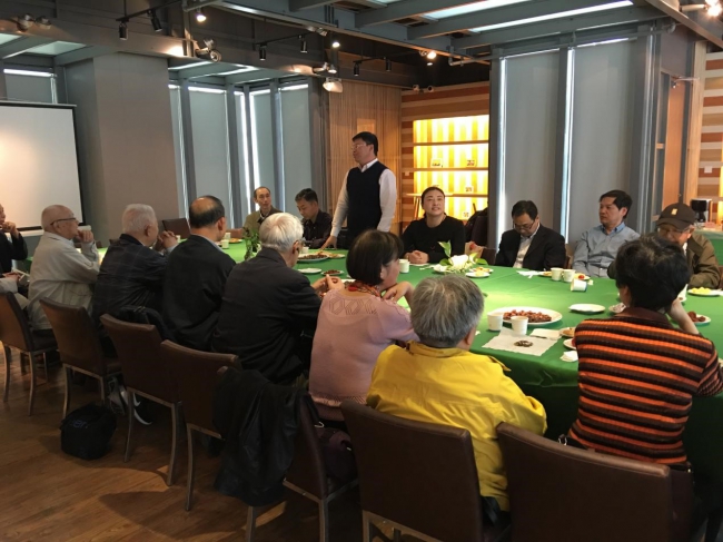 2018年重阳节茶话会,学院党委书记曹静、院长张立军、副院长钟再敏、党委副书记邓俊与学院退休老教师齐聚一堂,欢庆佳节。