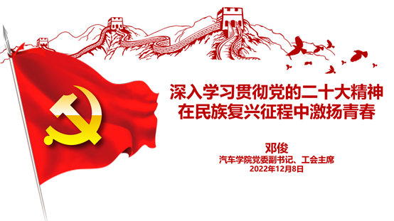 会议伊始,邓俊老师作了“深入学习贯彻党的二十大精神,在民族复兴征程中激扬青春”的报告,带领大家共同学习了党的二十大报告中关于教育、科技、人才的论述,重点学习了报告中关于青年、新时代青年工作的精神。邓老师强调,学院的发展依靠的是广大青年教师,关心青年教师成长、帮助青年教师发展、支持青年教师成才是学院发展的重要战略。青年老师们纷纷表示,需要深刻学习体会和贯彻落实党的二十大精神,结合疯情书库