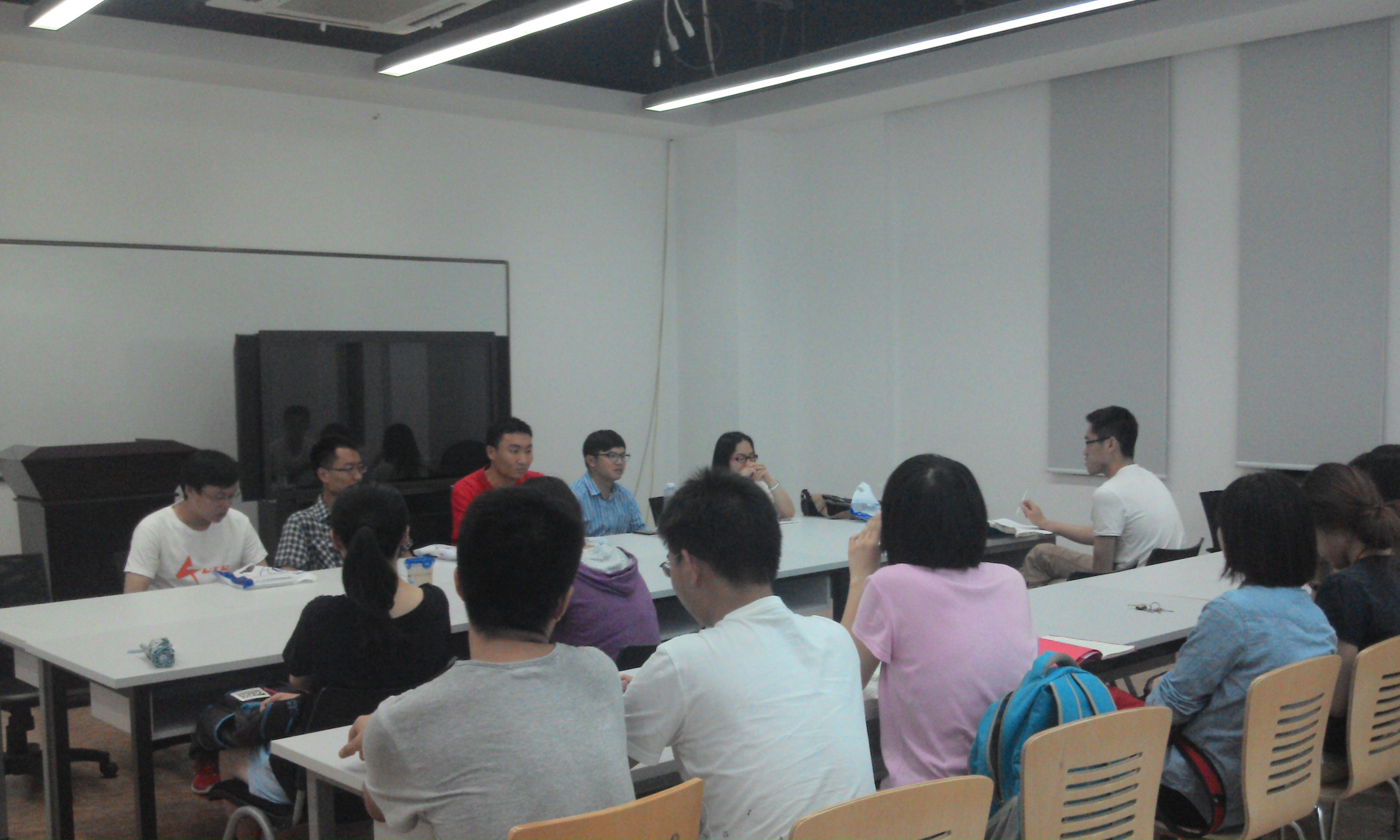 楼B205教室,11级本科支部牵头组织了“同车行”留学交流好榜样系列活动,邀请了张骞、李南、李沁、李坚、黄琛草五位09级本科的同学,为低年级同学们介绍出国留学的流程以及解答同学们的疑问。