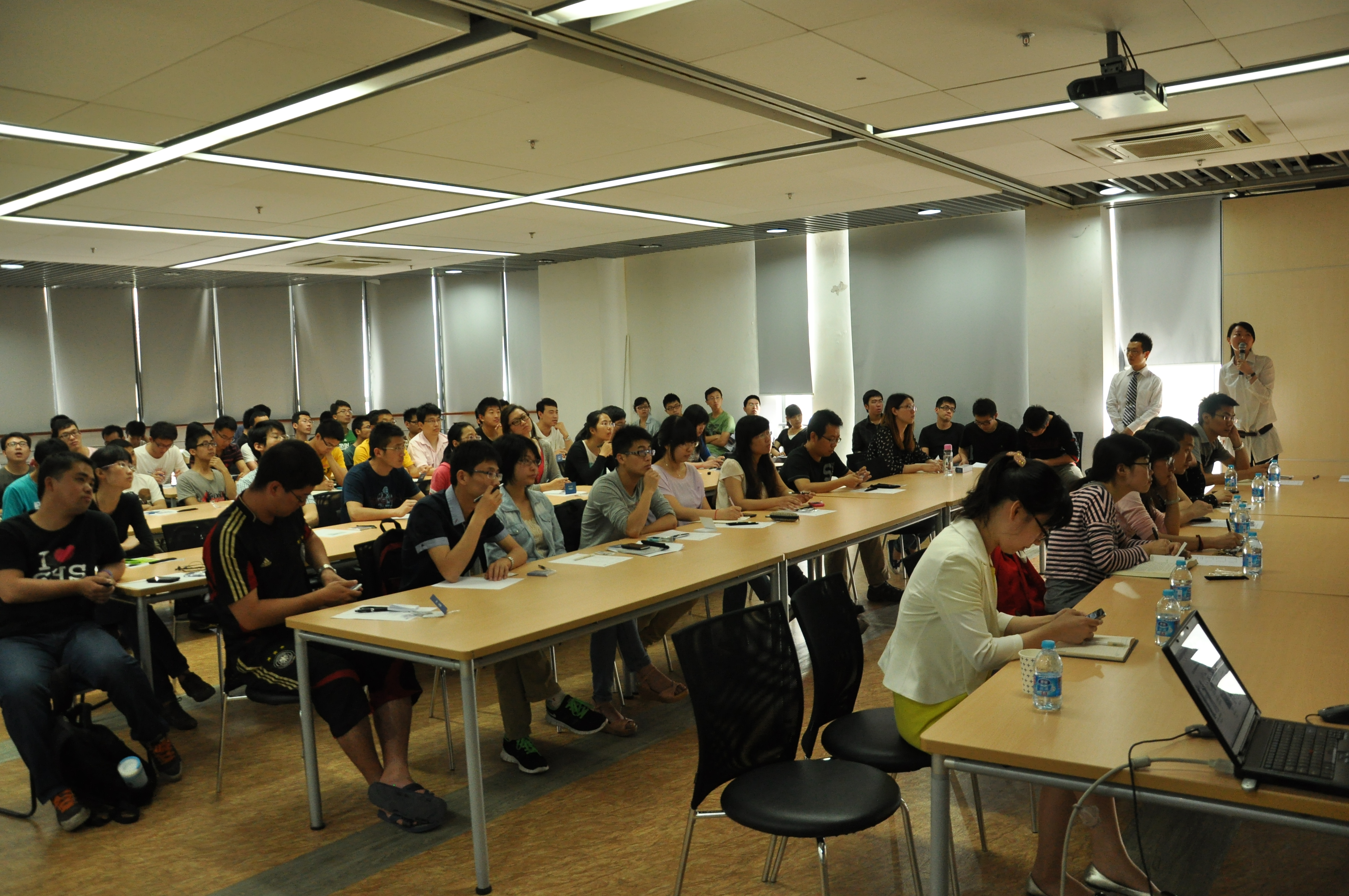 众多同学共同参加了本次交流会。来自福特公司的相关人士与现场同学们近距离接触,为即将跨入职场的学生指点职业规划和职场礼仪。