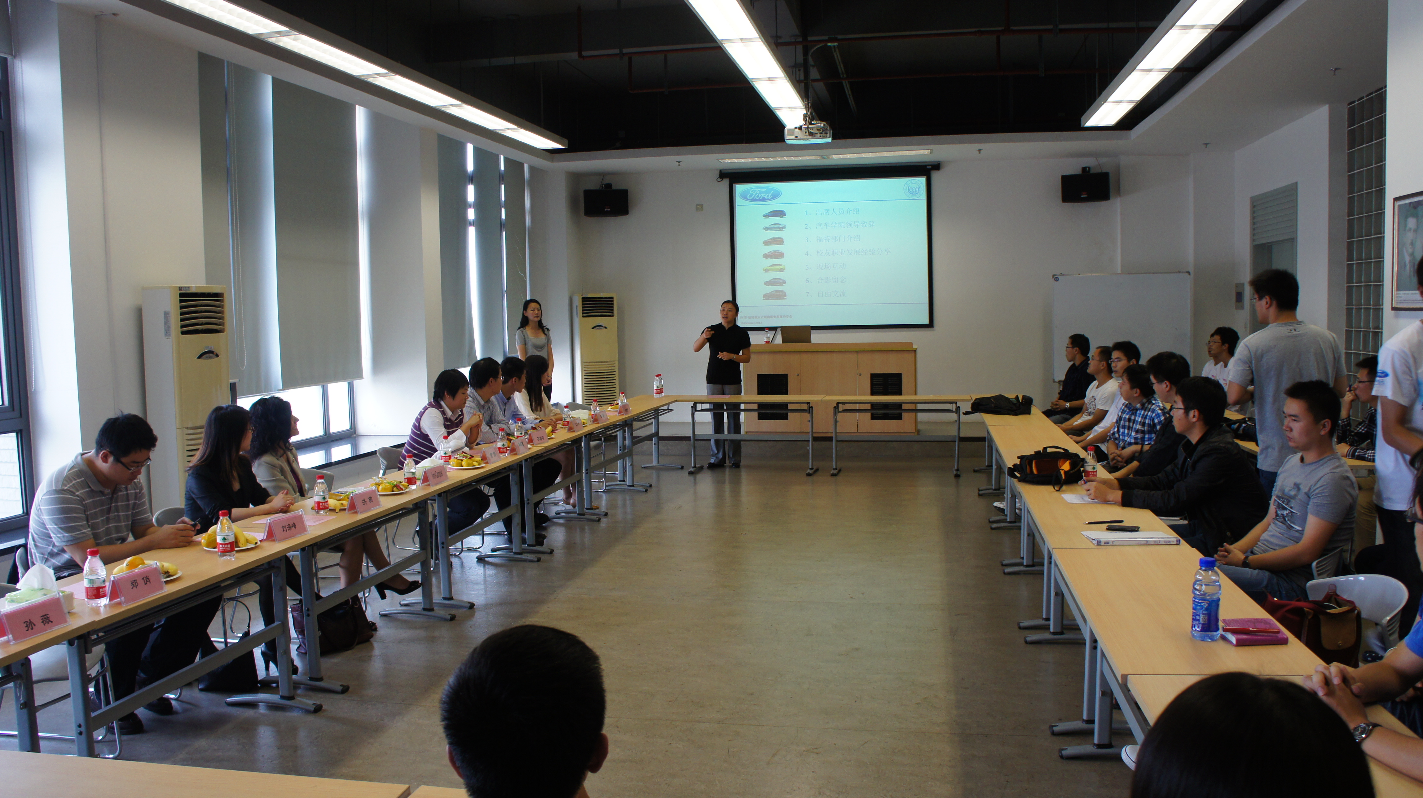 30多名同学共同参加了本次交流会。来自福特亚太及非洲地区总部产品开发部的5名同济校友以及人力资源部相关负责人与现场同学们近距离接触,就大家关心的毕业求职、福特员工职业发展等问题与同学们进行交流。