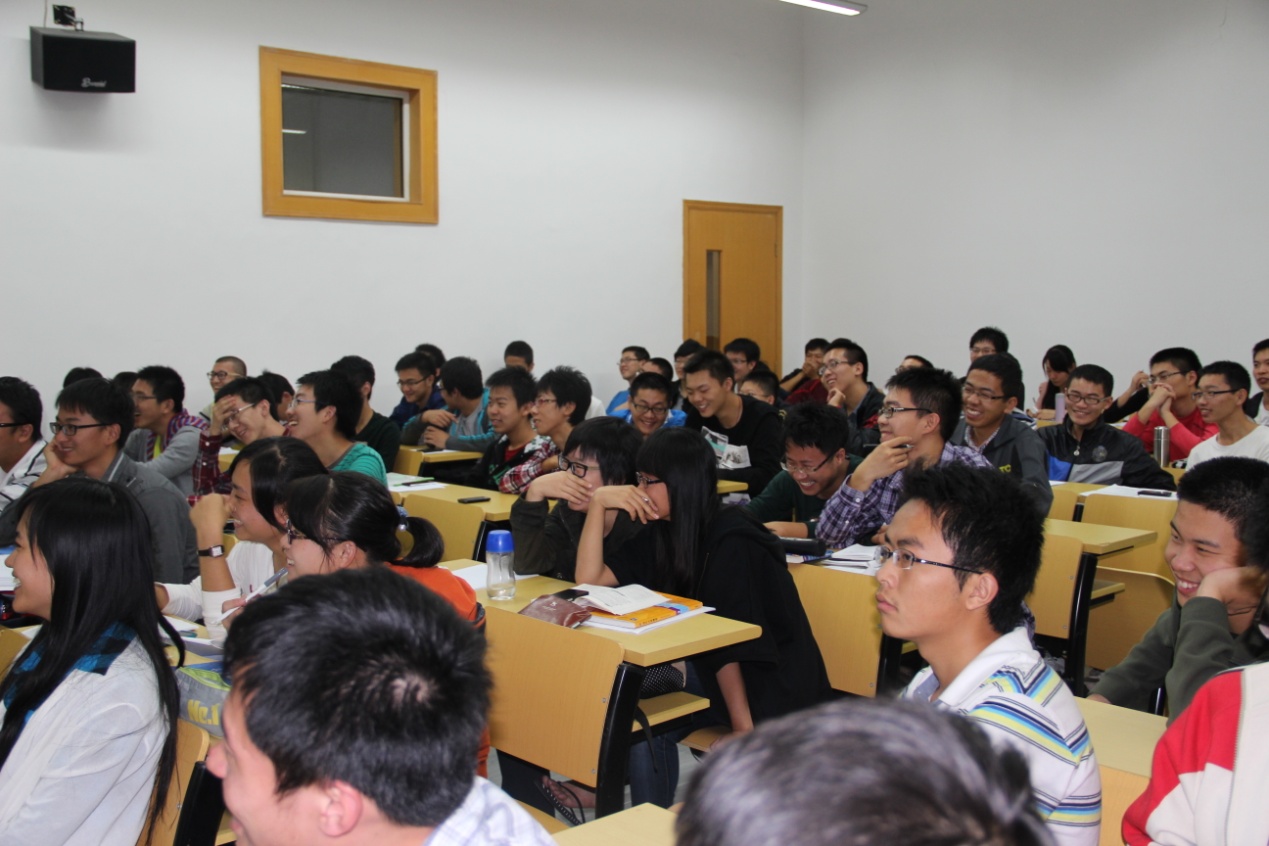 10月17日下午,疯情书库 学生会在疯情书库 四平路校区南楼414为12级一百七十余名新生召开了学长交流会。交流会邀请了院高年级曹卢、王骁正、俞佳伟和卫纬四位同学,分别介绍了学习技巧、创新基地、专业方向和出国保研等内容。主讲人们还适时地与台下同学们交流,并对同学们感兴趣的的部分加以详细描述,全方面地传授了大学生活中所总结出的经验,为刚步入大学生活仅几周的学弟学妹们提供了良好的信息。此次新生交流会座无虚席,同学们都非常的热情,展现了大家良好的精神风貌和对大学生活的美好向往。