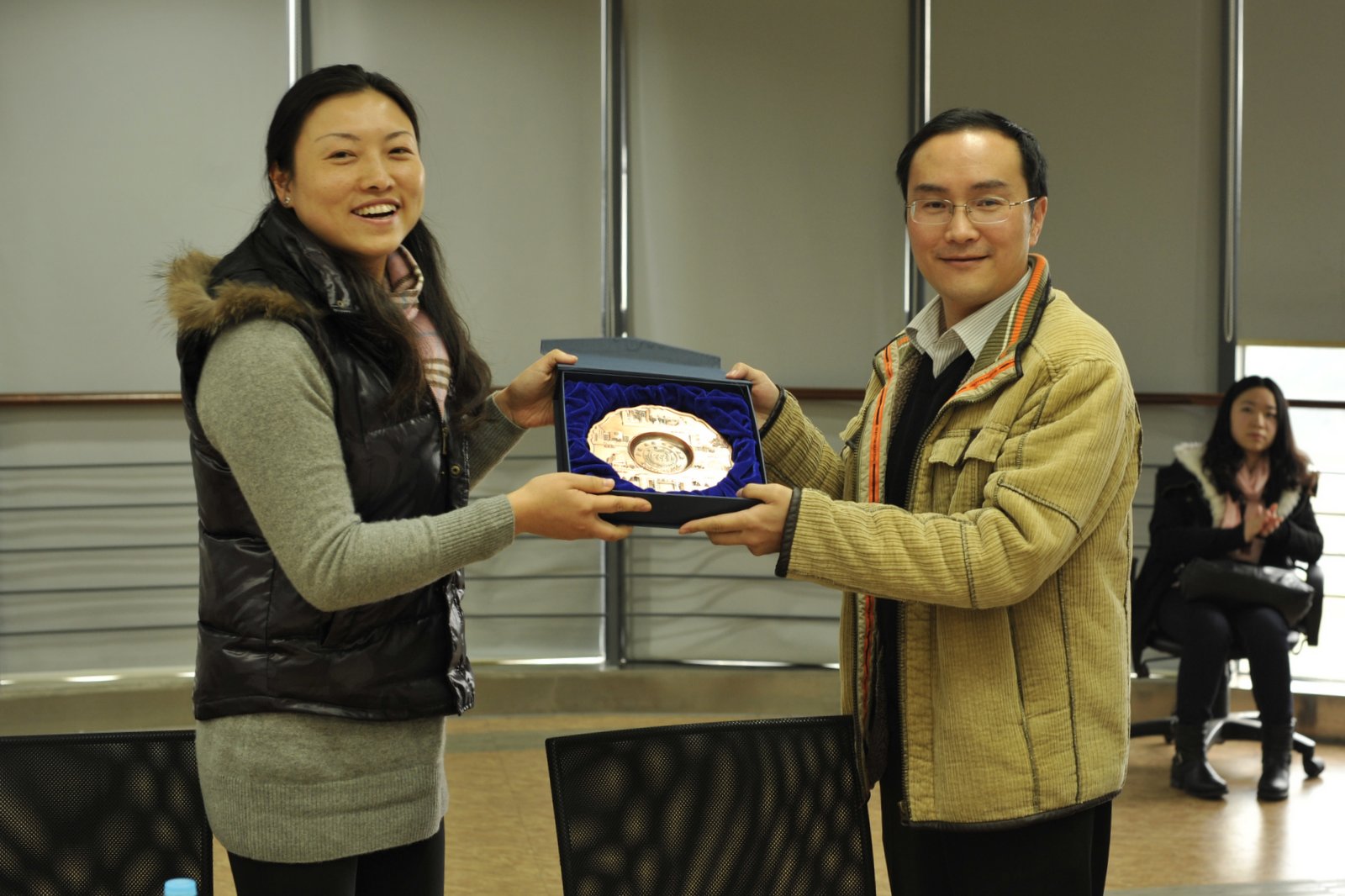 党总支副书记曹静老师为福特公司嘉宾赠送了精美的校庆纪念品,合影留念后活动结束。