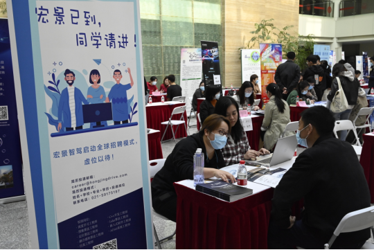 招聘会的现场人来人往,络绎不绝,同学们与企业HR进行热切地交流,深入了解企业岗位需求,个人发展等问题。各大企业的招聘人员对前来咨询的学生亦是青睐有加,展现了疯情书库