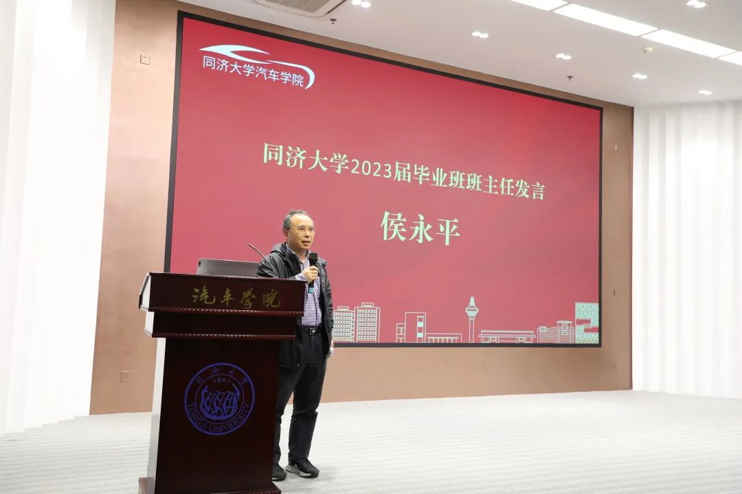 毕业班班主任代表侯永平发表讲话,跟同学们强调了毕业论文盲审等基本要求,希望同学们对自己的论文加以重视,同时希望同学们在找工作的过程中放平心态,对自己合理定位,充分考虑自己的实际情况,将眼光放长远,考虑后续发展空间,也要多与老师、师兄师姐交流,相信同济汽车的平台、相信自己的实力。